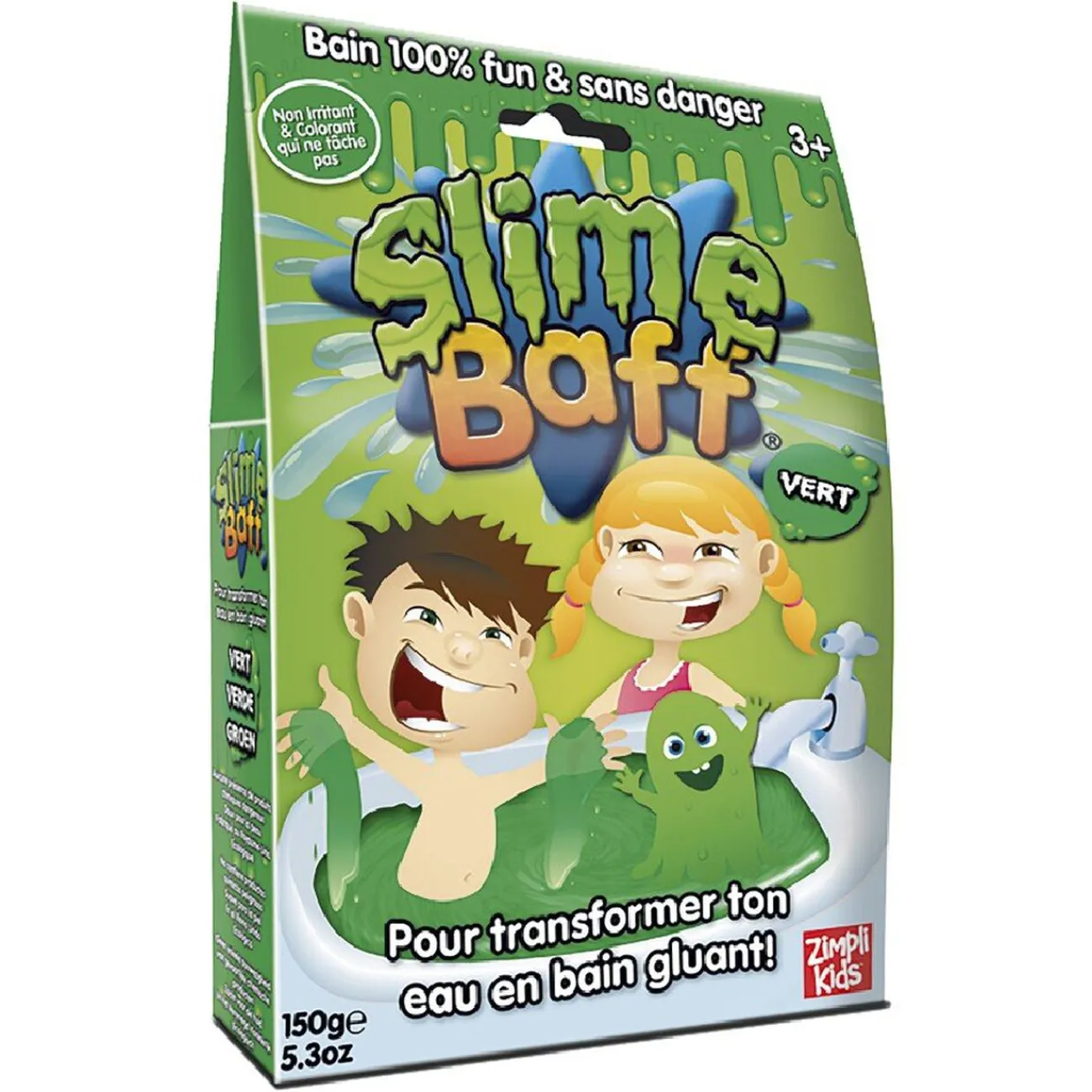 Ce produit existe en 2 couleurs: Rouge/Vert, couleurs aléatoires selon disponibilité en magasin. 1- Versez le sachet de poudre dans la baignoire, l’eau se transforme miraculeusement en matière gluante et colorée ! Versez le 2ème sachet de poudre pour retransformer le gel en eau.Dès 3 ans. -Dimensions: l 20,2 x h 13,2 x L 3,8 cm.