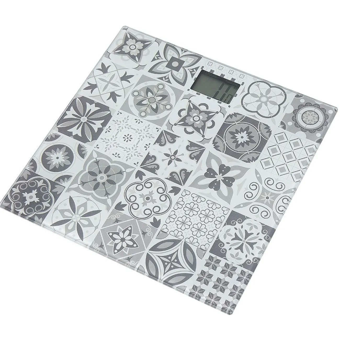 Surveillez votre poids de près avec ce pèse-personne électronique motif carreau de ciment gris.