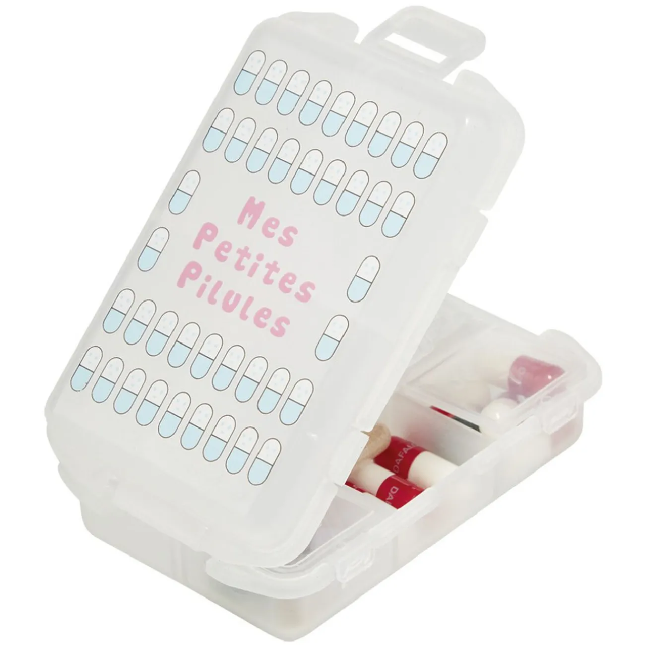 Pilulier 6 compartiments avec décor fantaisie.