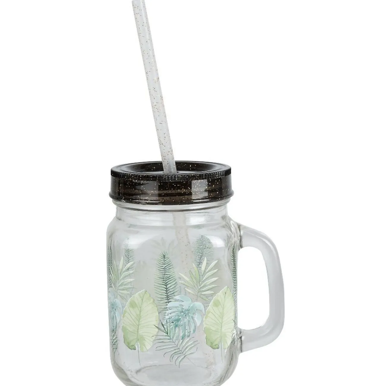 Bocal à anse avec paille, motif exotique, modèle aléatoire selon disponibilité en magasin.