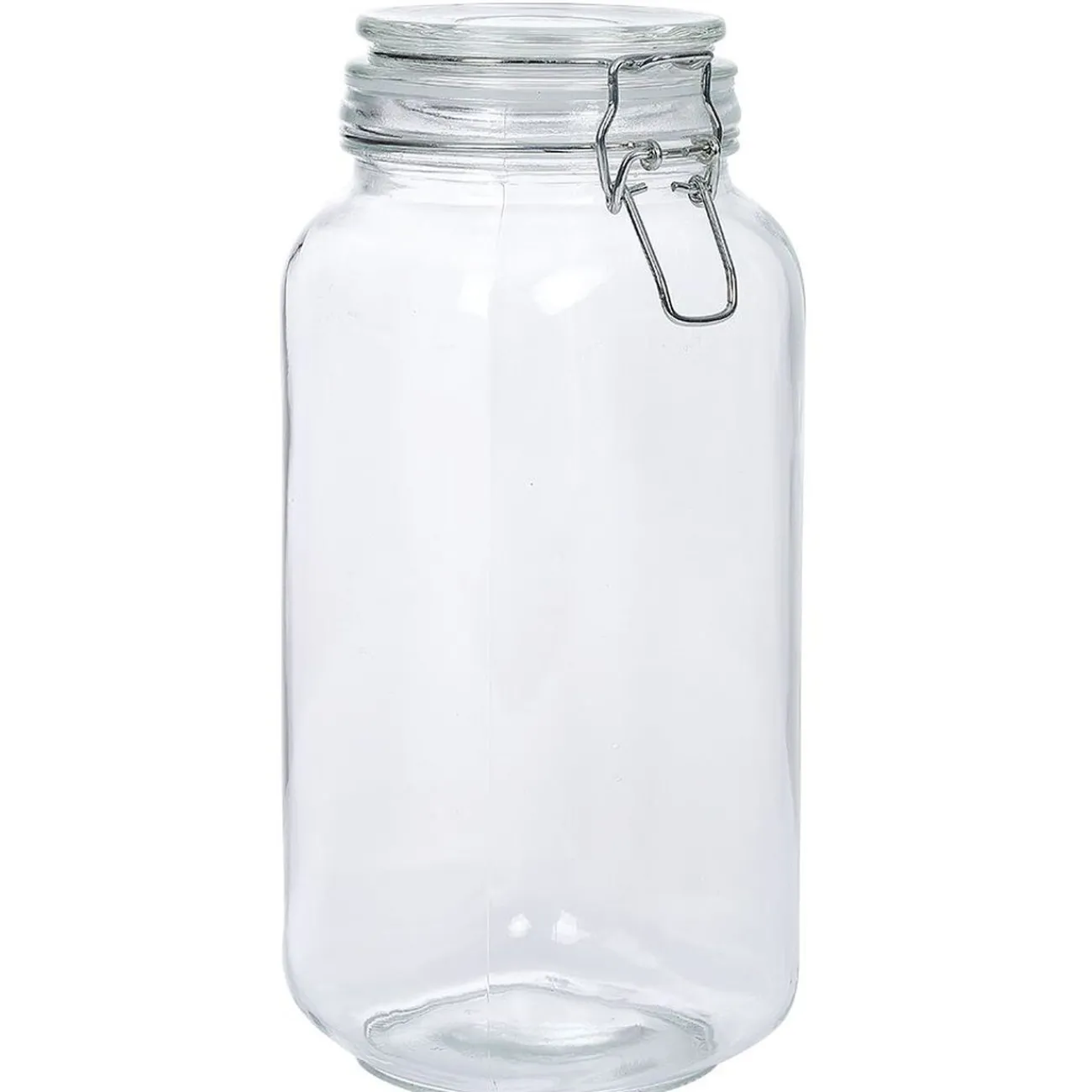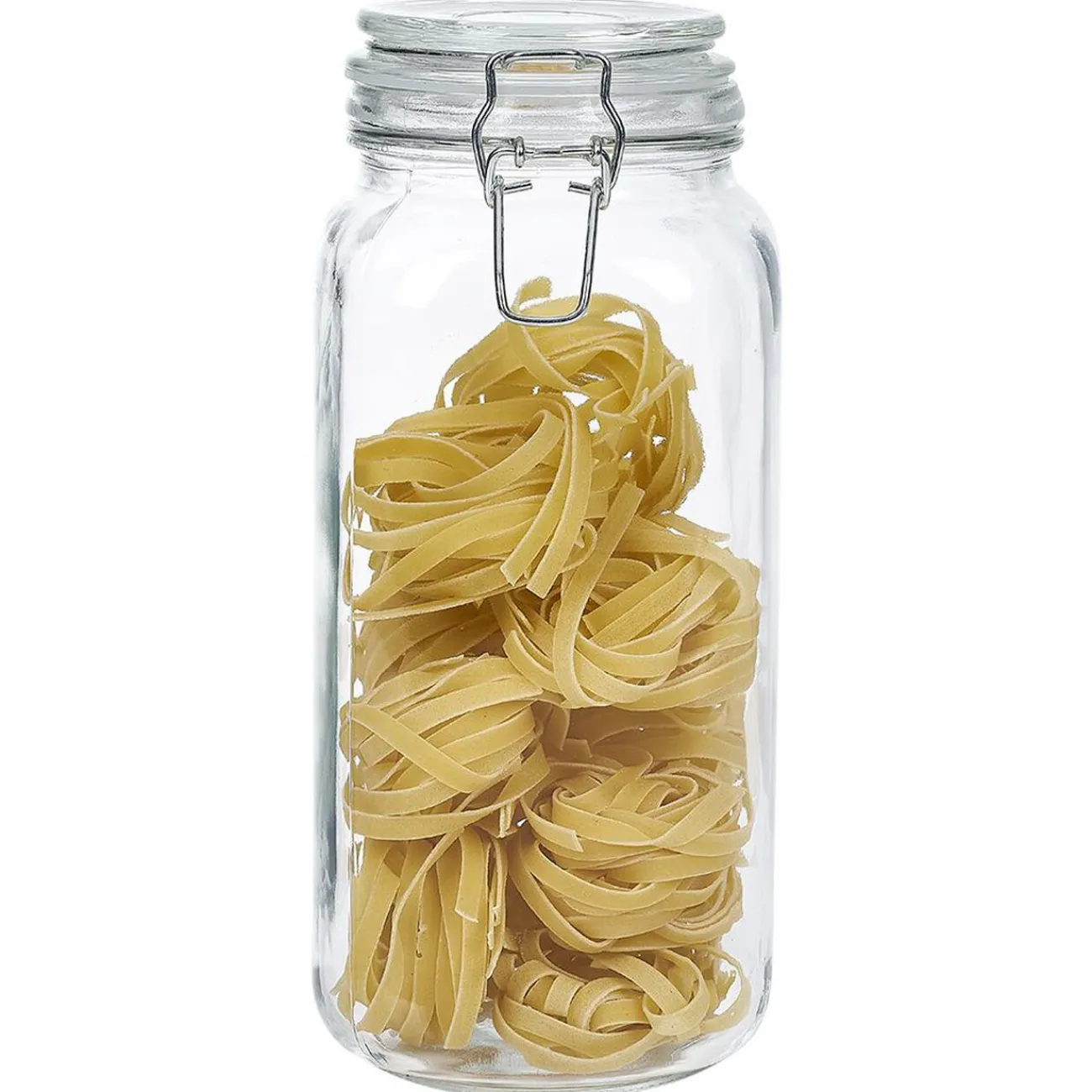Bocal en verre avec couvercle à charnière assurant une fermeture hermétique du contenu (pâtes, riz, légumes secs …).