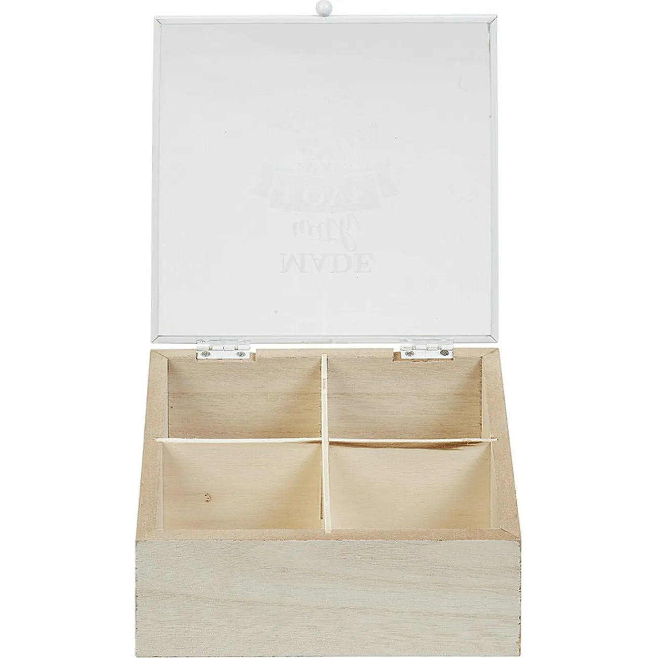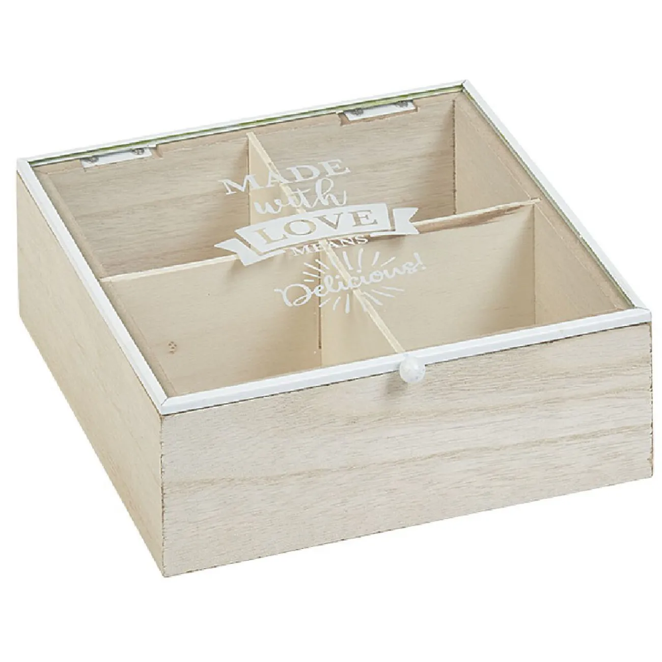 Rangez votre thé dans cette jolie boîte décorée de l’inscription « Made with love means delicious » et dotée de 4 compartiments.