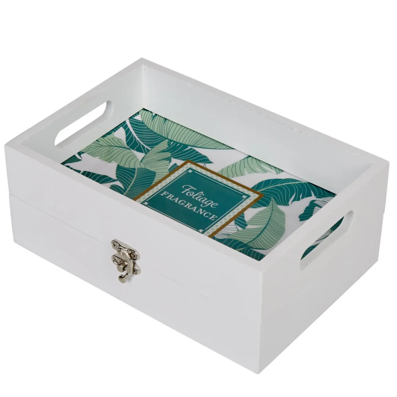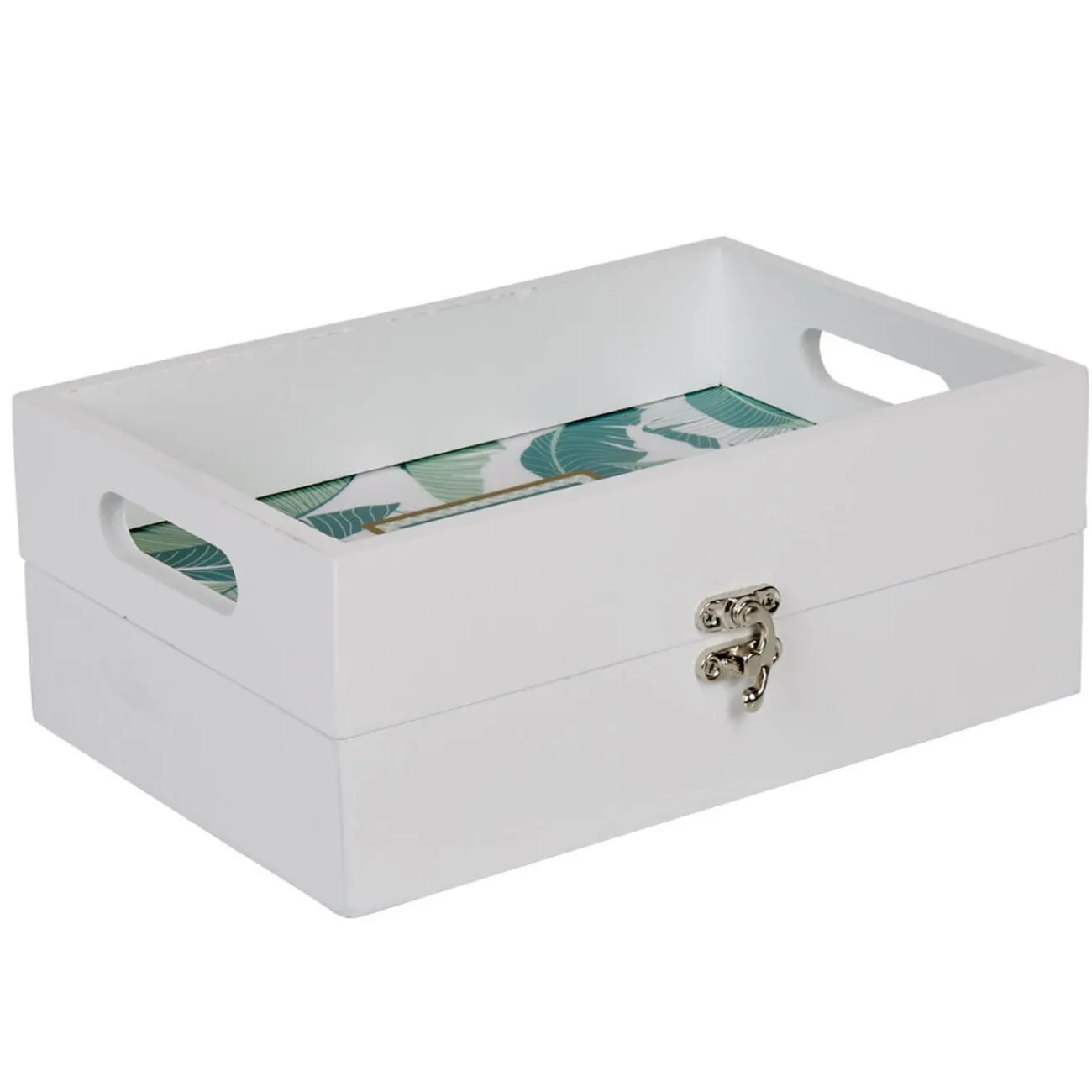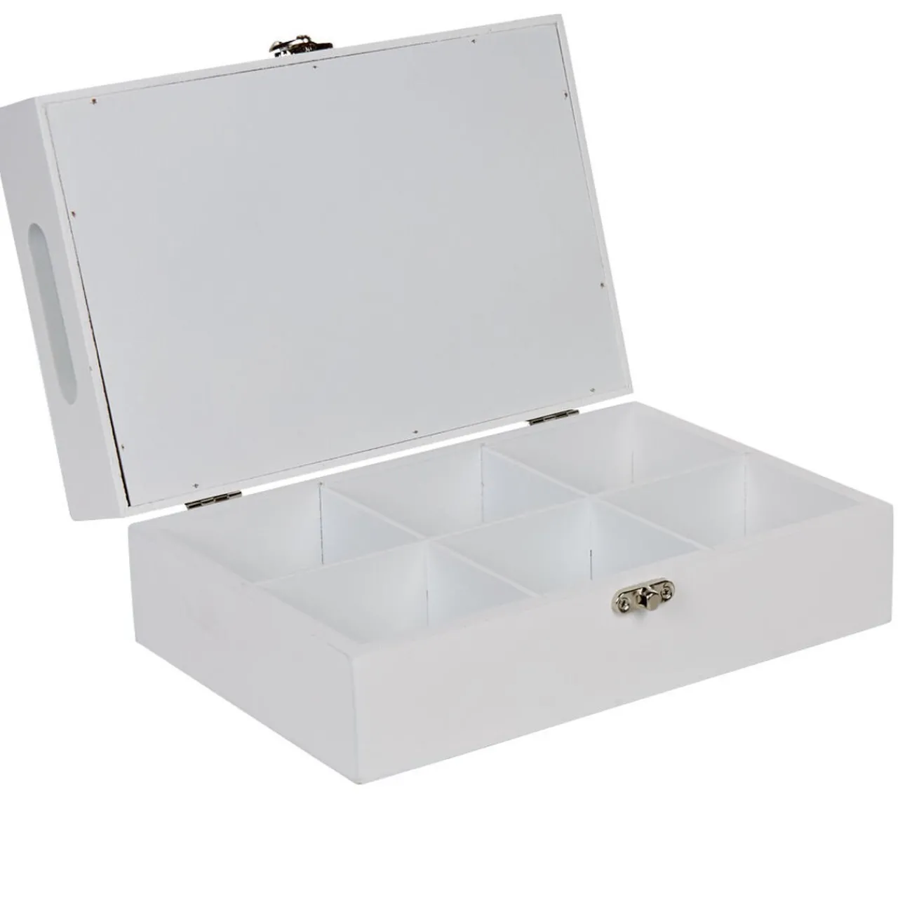 Boite déco 2 en 1 qui fait boite à thé et plateau de service : la boite s’ouvre par le haut qui se détache.