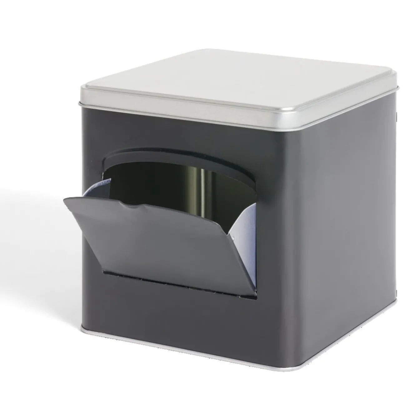 En métal noir, cette boîte de conservation avec couvercle gris et ouverture frontale offre une solution élégante et pratique pour organiser votre cuisine.