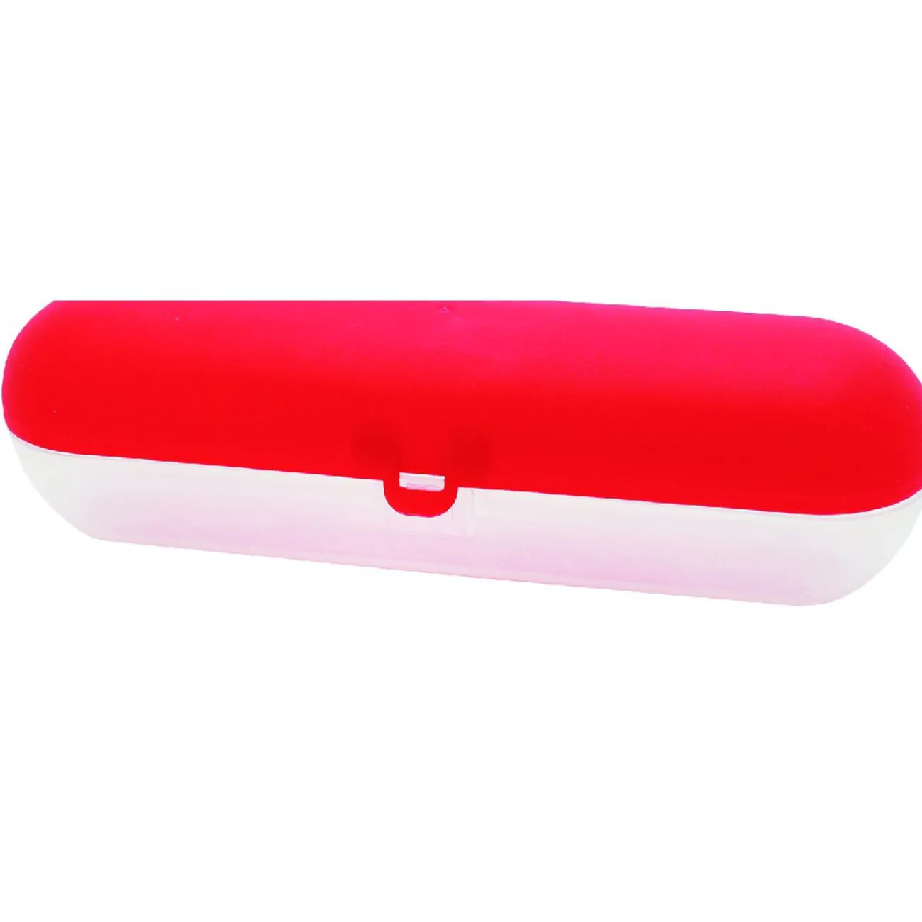 Boîte de conservation alimentaire de forme cylindrique rouge et transparente. Idéale pour conserver le saucisson entamé.