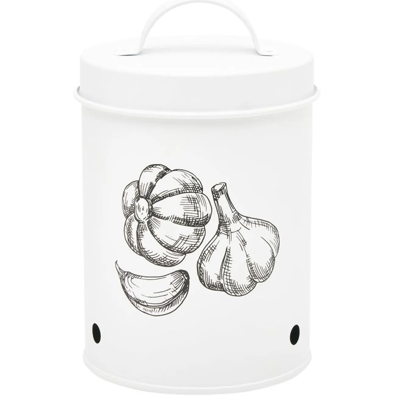 Cette noîte de conservation en métal blanc est idéale pour conserver votre ail et toutes ses saveurs grâce à son couvercle !