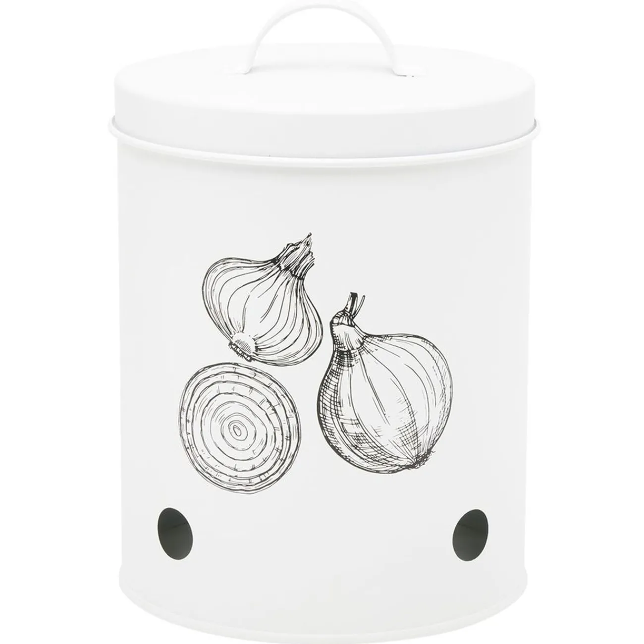 Choisissez cette boîte de conservation en métal blanc avec couvercle pour conserver vos oignons et leurs saveurs le plus longtemps possible !