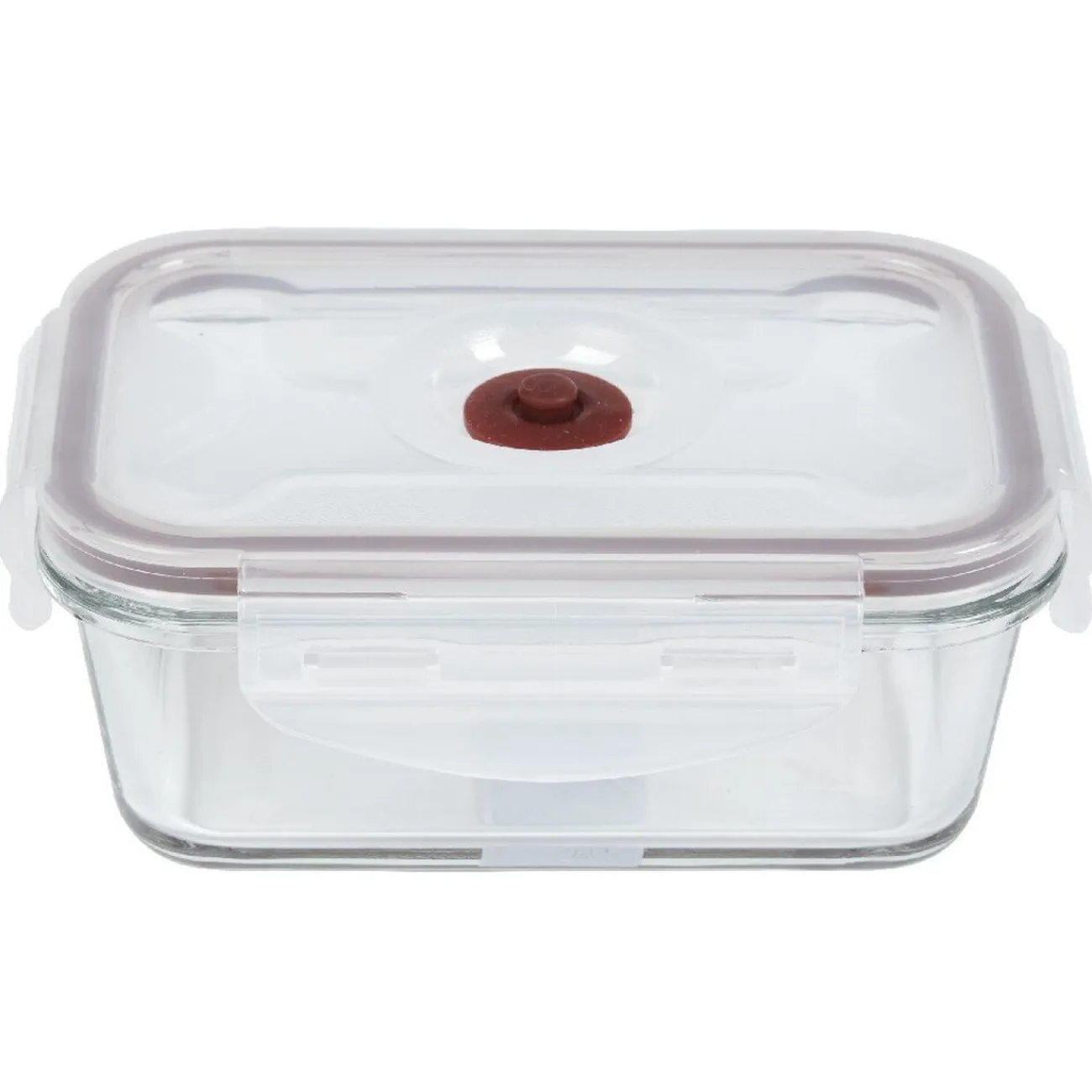 Boîte en verre vide d’air avec couvercle hermétique rouge et blanc, d’une contenance de 500 ml.