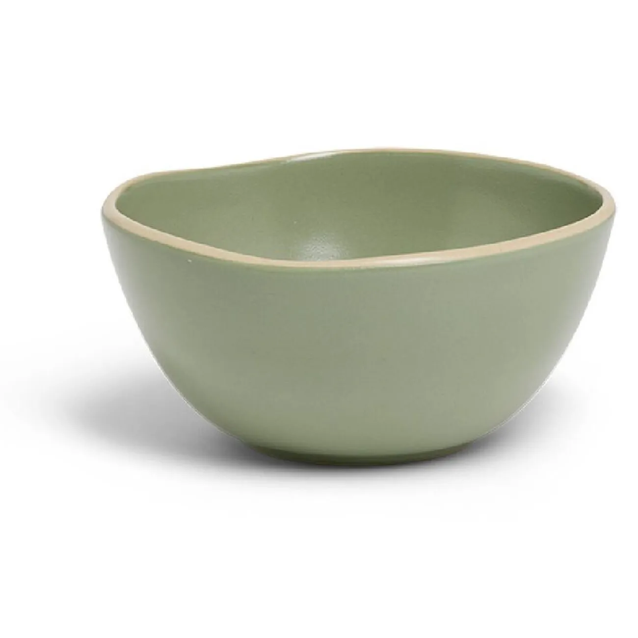 Un bol au style artisanal, arborant une teinte vert sauge apaisante et orné de bords irréguliers.