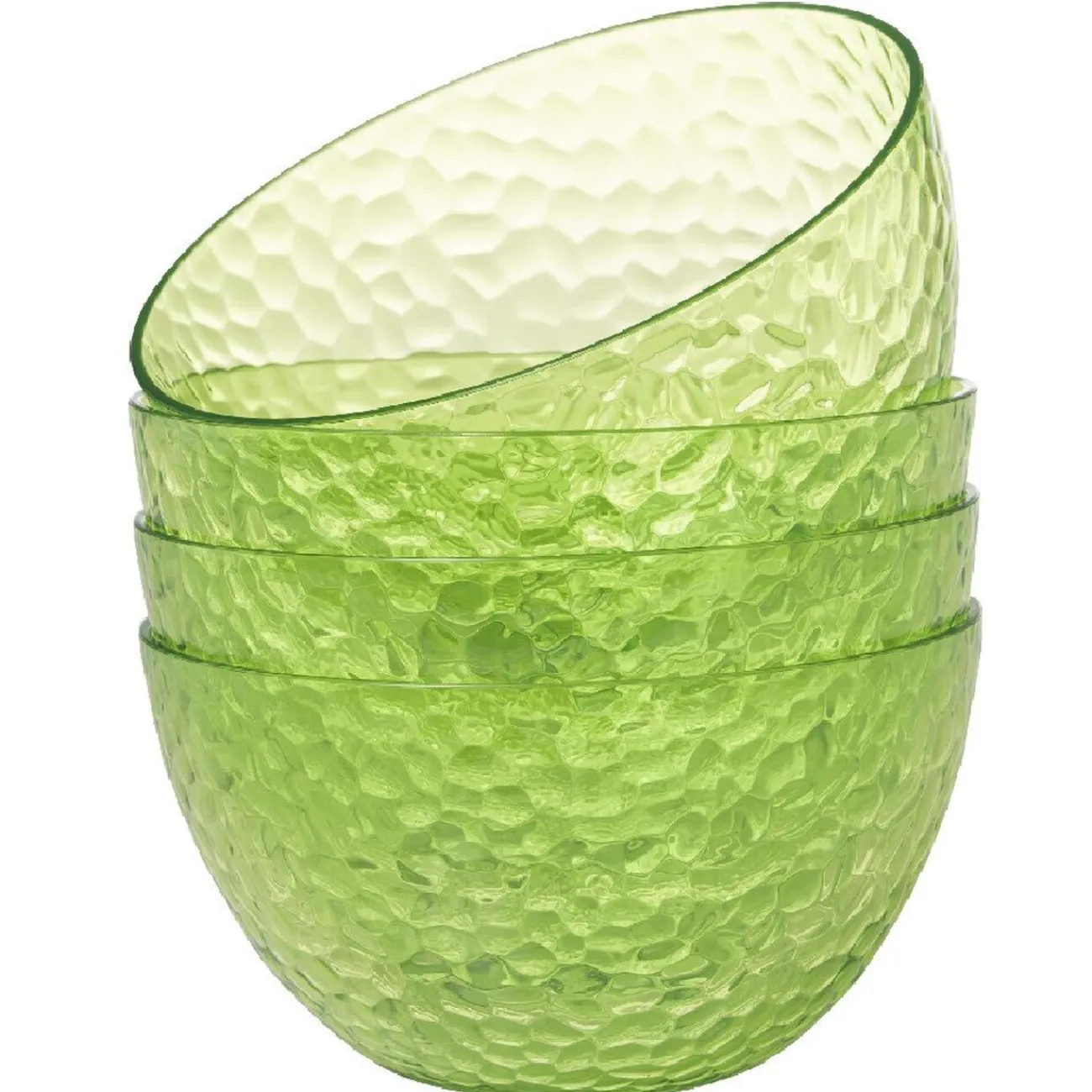 4 bols verts en plastique martelé, dim. Ø14xh.8,5 cm.