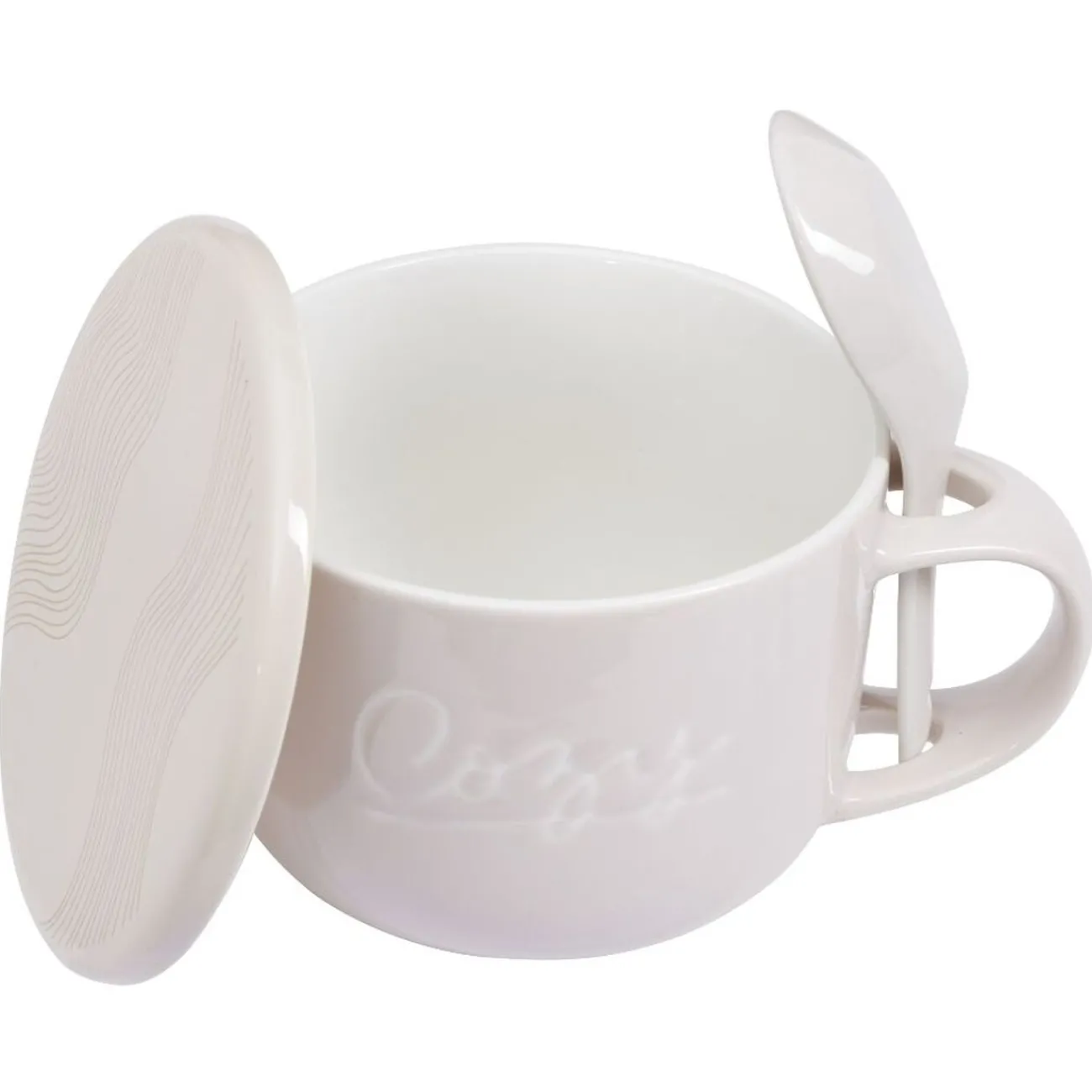 Pour savourer une soupe qui reste au chaud, choisissez ce bol jumbo en porcelaine, vendu avec sa cuillère et son couvercle assortis.