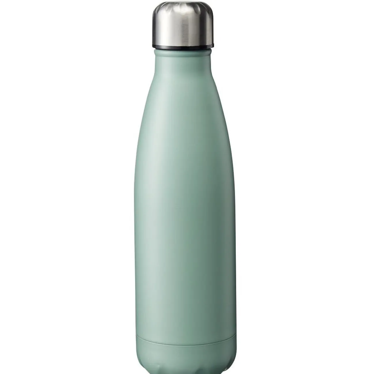 Bouteille isotherme en inox de couleur verte, à emporter partout avec soi.