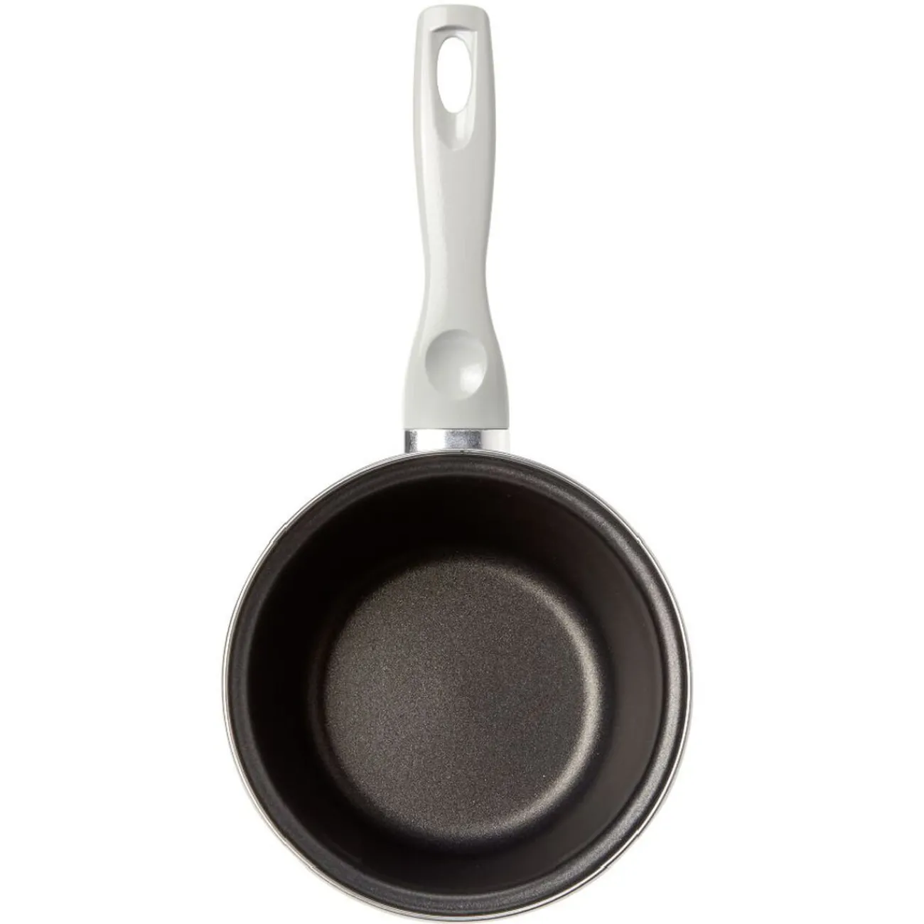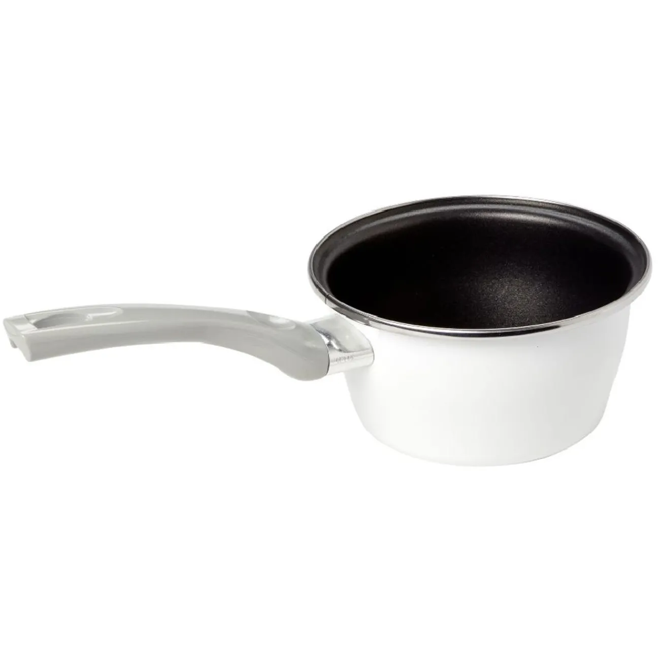 Casserole en acier émaillé, blanche à l’extérieur, noir à l’intérieur.
