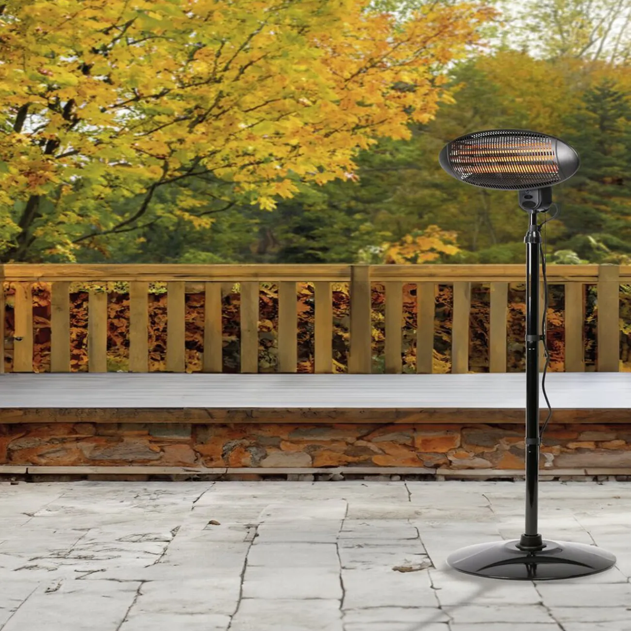Profitez de vos espaces extérieurs même par temps froid avec ce chauffage sur pied puissant de 2000W.