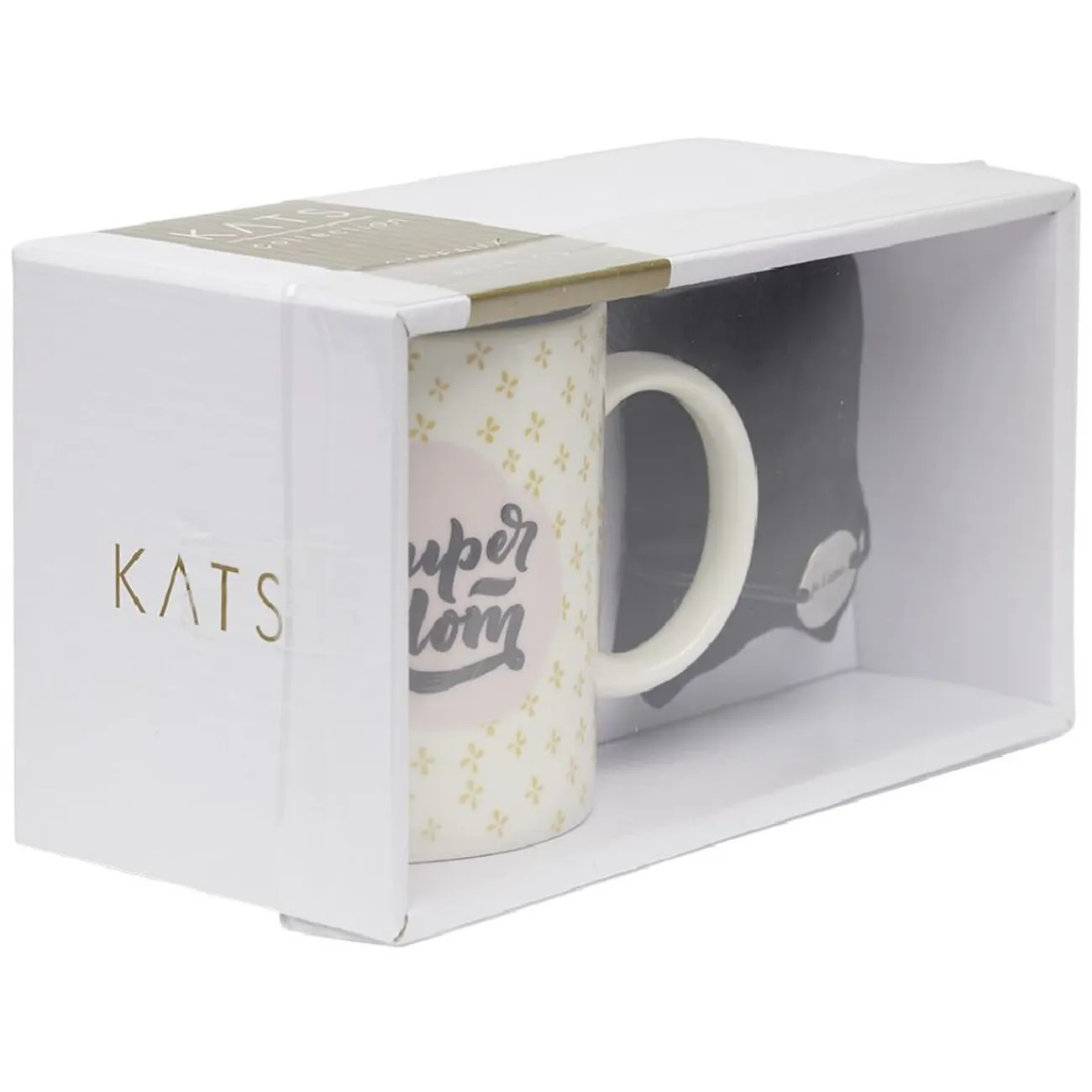 Coffret cadeau contenant un joli mug en porcelaine et un bracelet cordon avec plaque « je t’aime ».