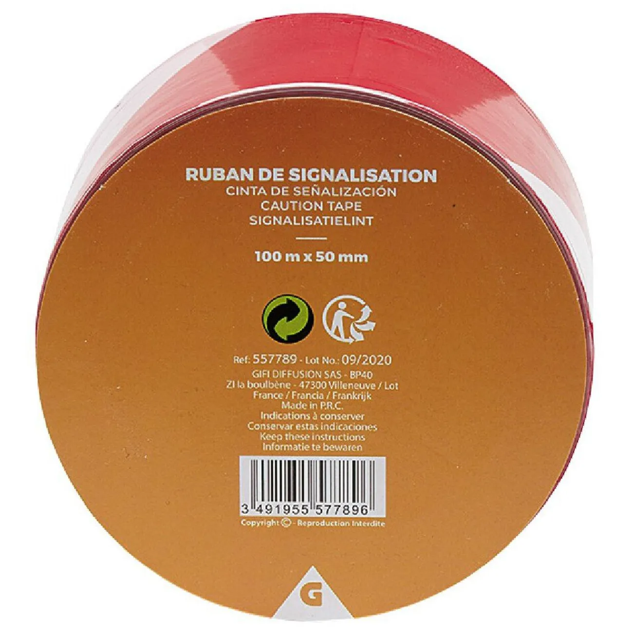 L.100 m x 50 mm. Polypropylène, Rouge et blanc.