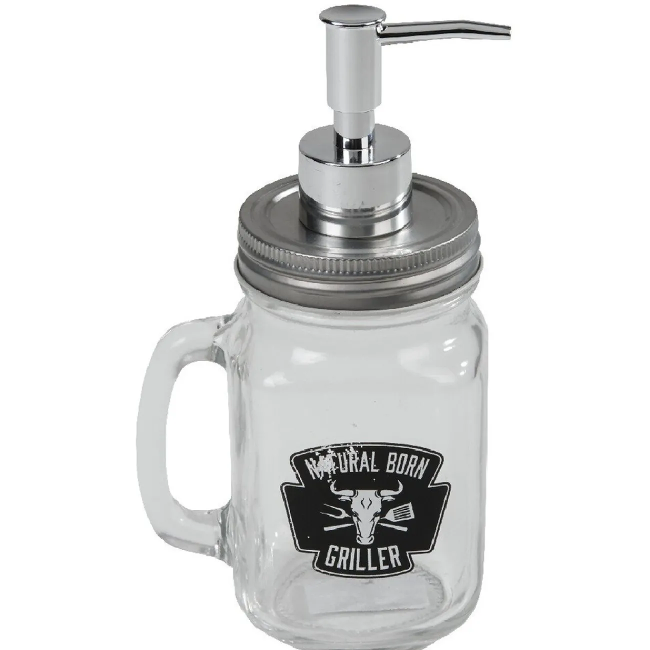 Contenant à sauce de style américain avec poussoir et poignée latérale.