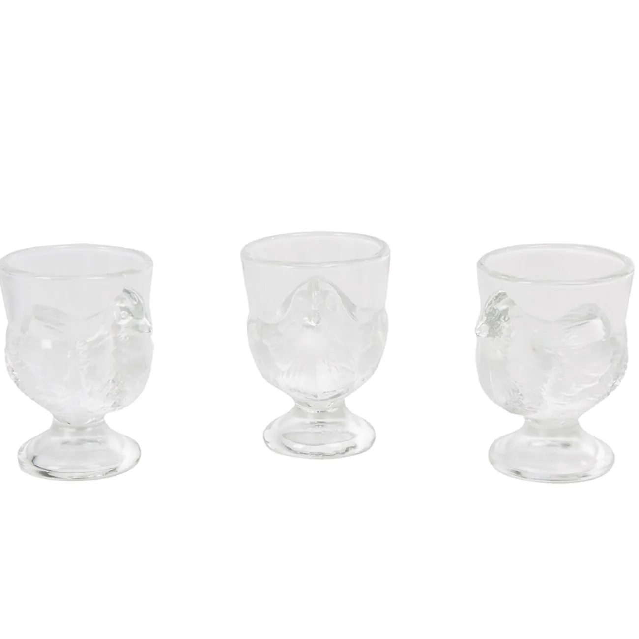 Lot de 3 coquetiers design poule en verre tranparent par Luminarc.