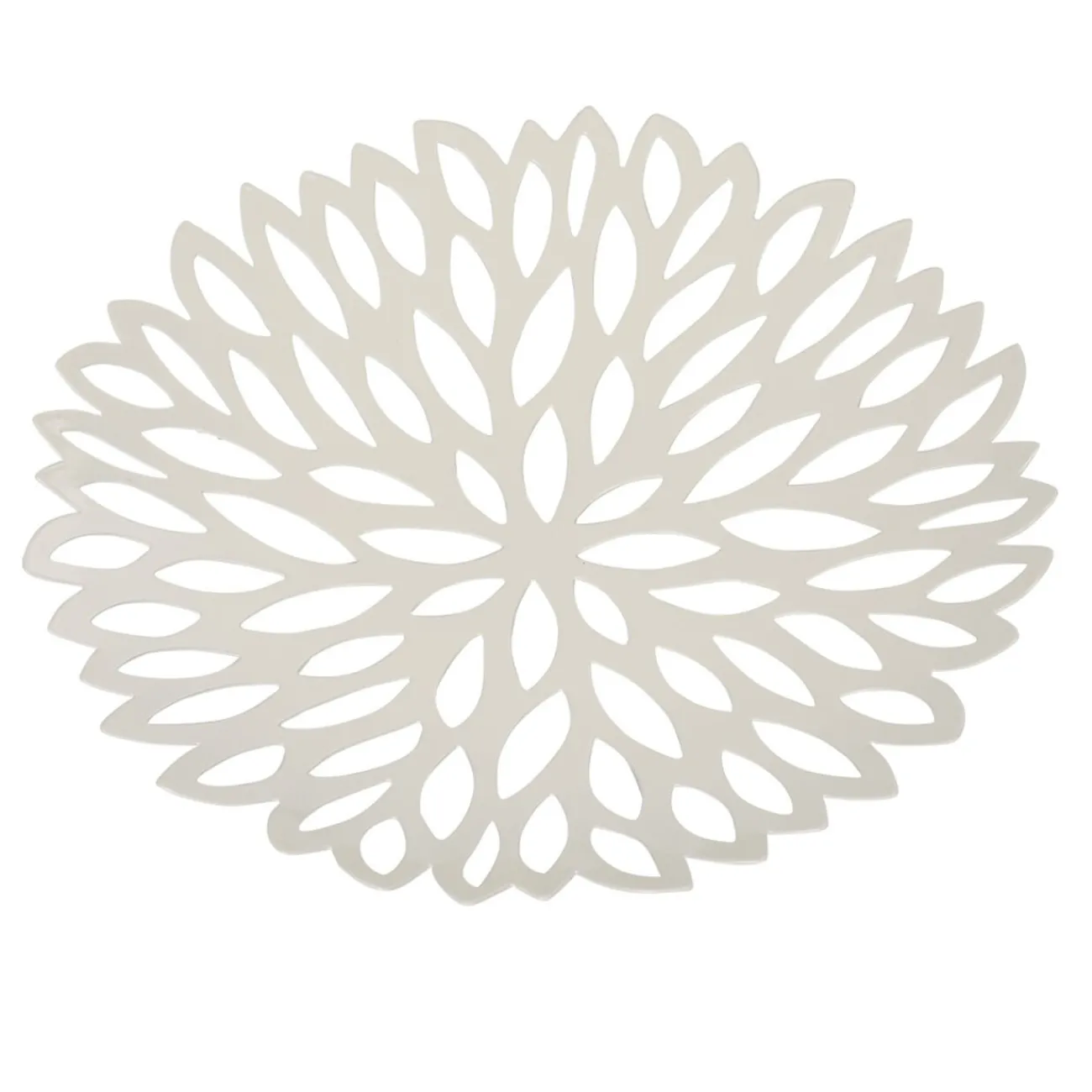 Elégante corbeille à fruits, en fer, de couleur blanc crème, en forme de fleur. Apporte une touche sereine à votre décoration de table.