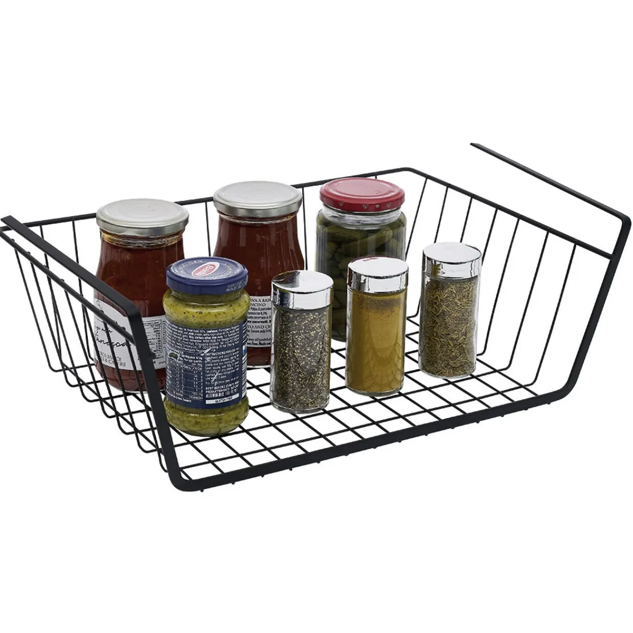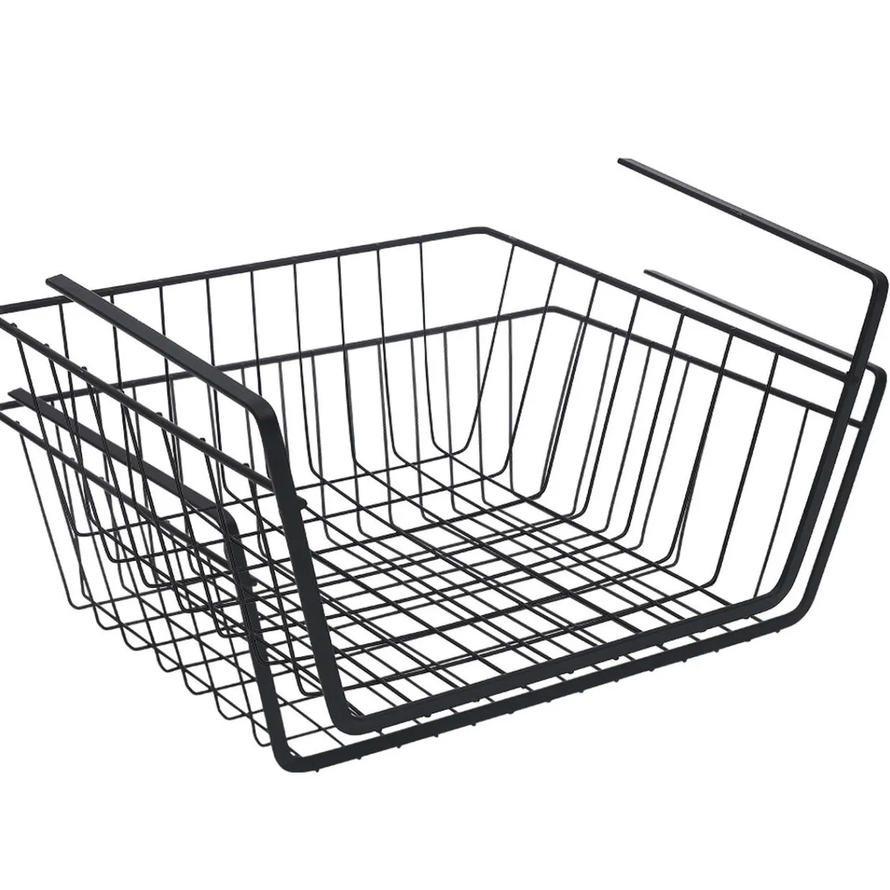 Lot de 2 corbeilles en métal noir à suspendre, parfaites pour optimiser l’espace sous vos placards.