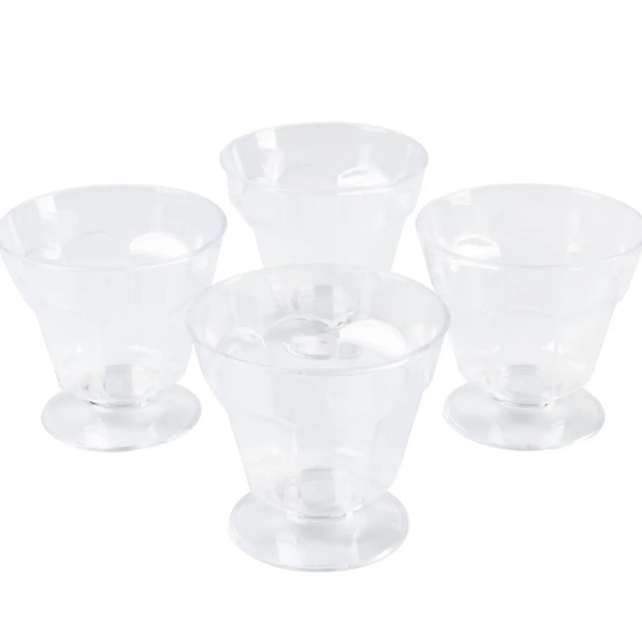 4 coupes à glace transparentes, dim. 10×10 cm, plastique.