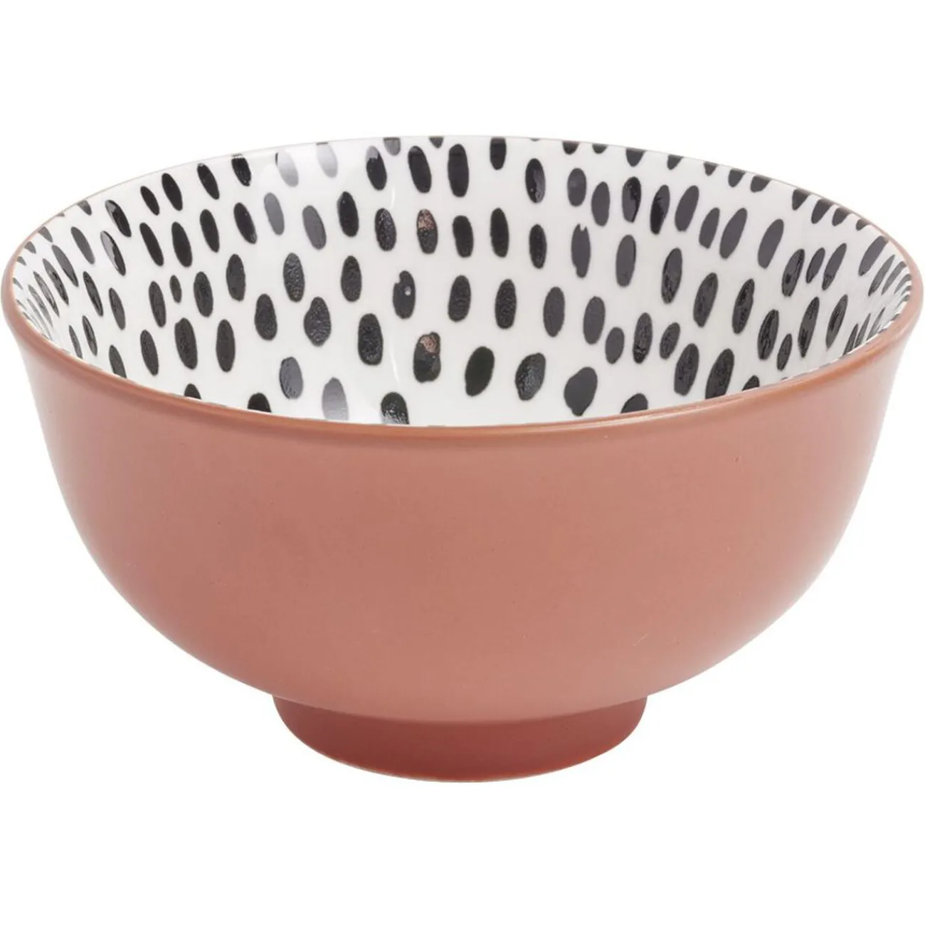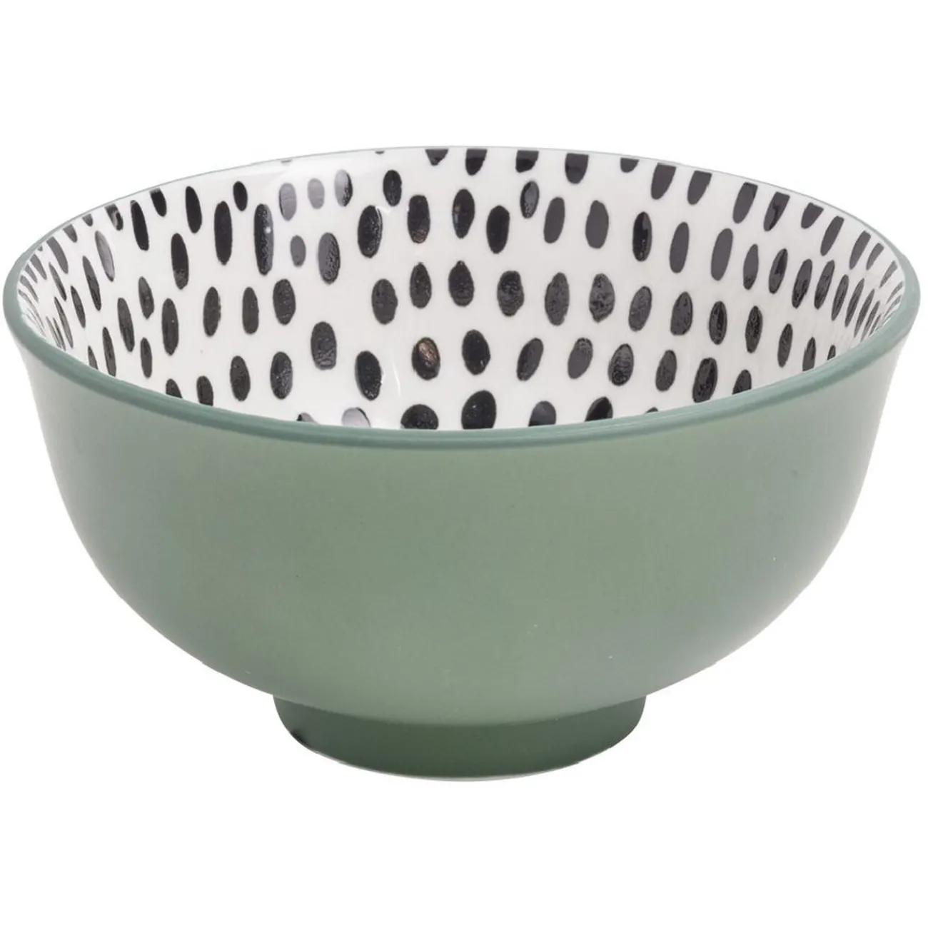Coupelle en porcelaine coloré uni à l’extérieur et avec intérieur décor noir et blanc.