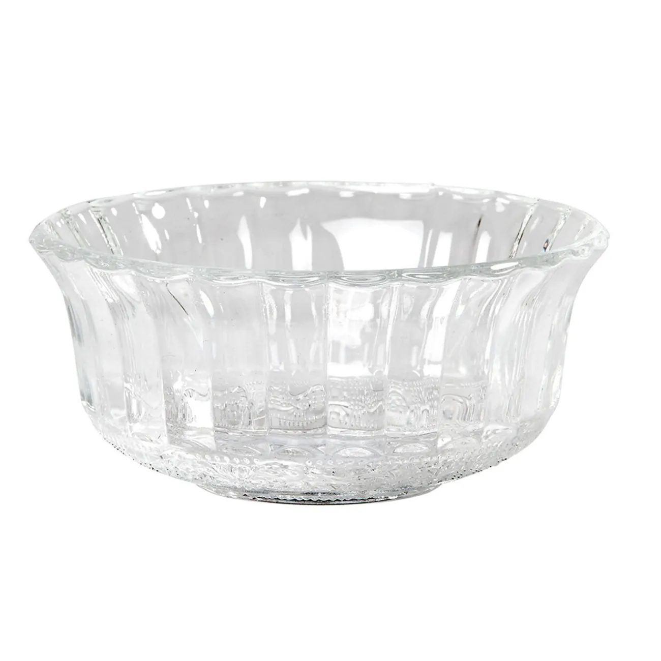 Coupelle transparente en verre ciselé. Idéal pour servir avec élégance de petites coupes de fruits et autres desserts.
