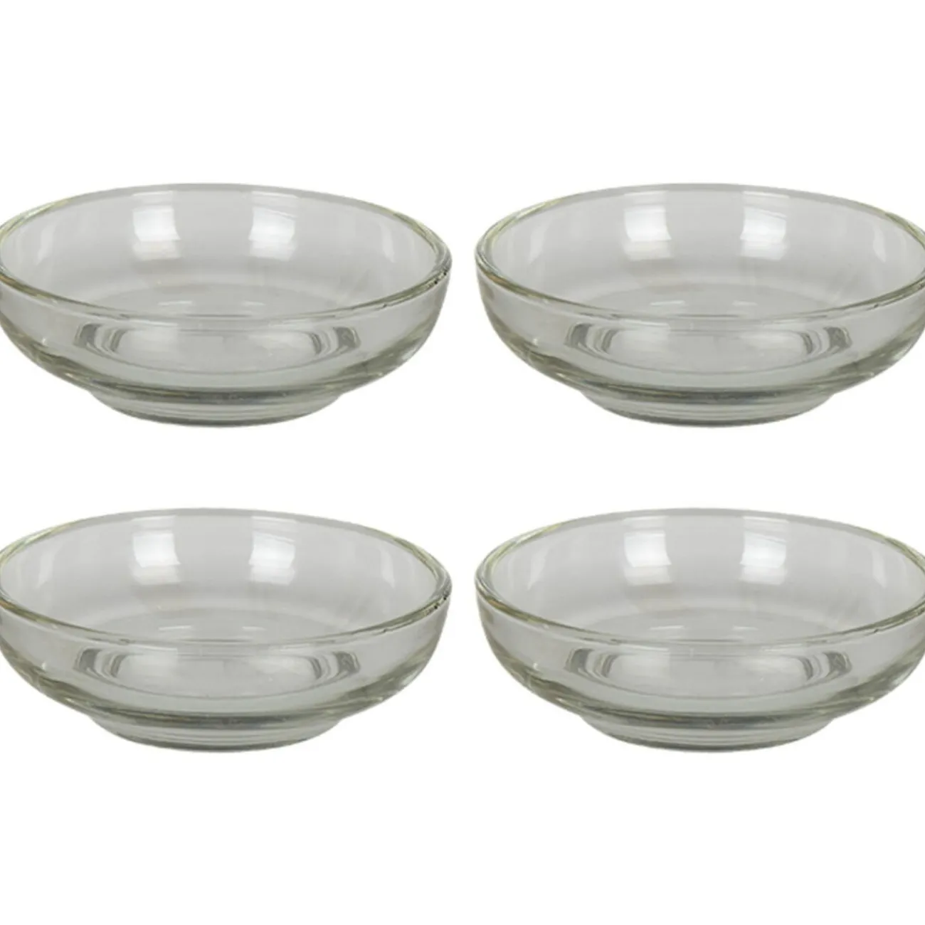 4 coupelles en verre transparent, dim. Ø8xh.2 cm.
