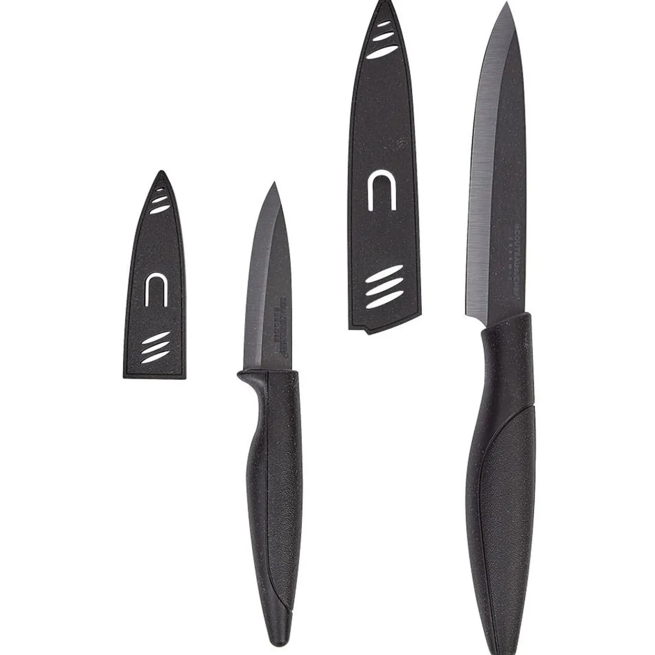 Set de deux couteaux avec lame céramique noire, l’un d’office, l’autre de cuisine.