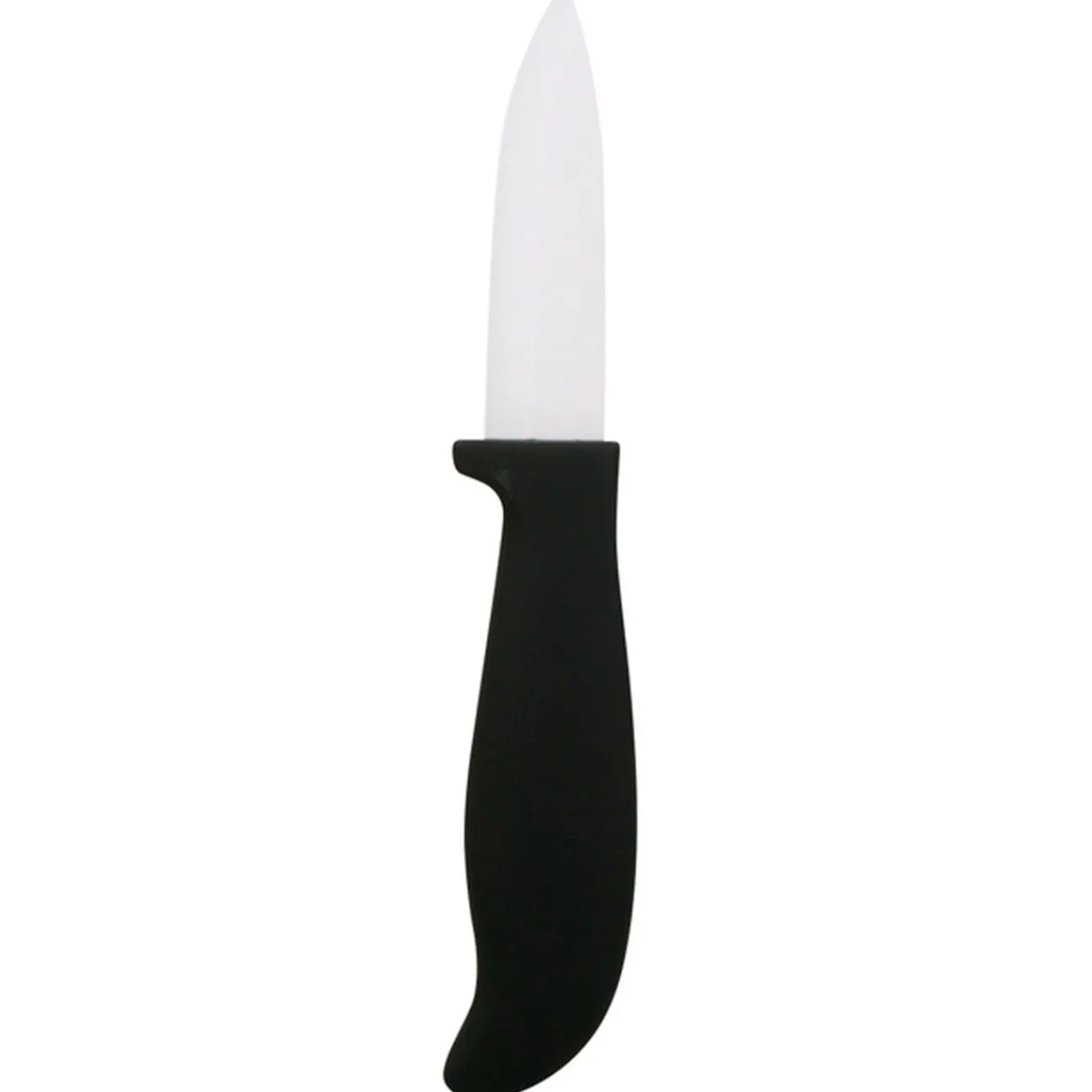 Couteau office lame céramique blanche L. 7,5 cm, manche plastique noire.