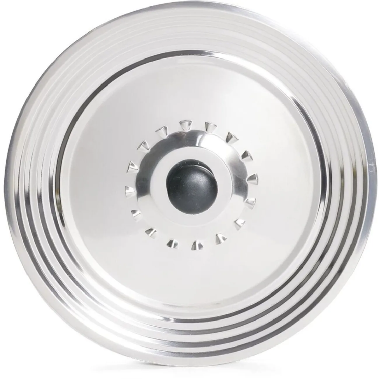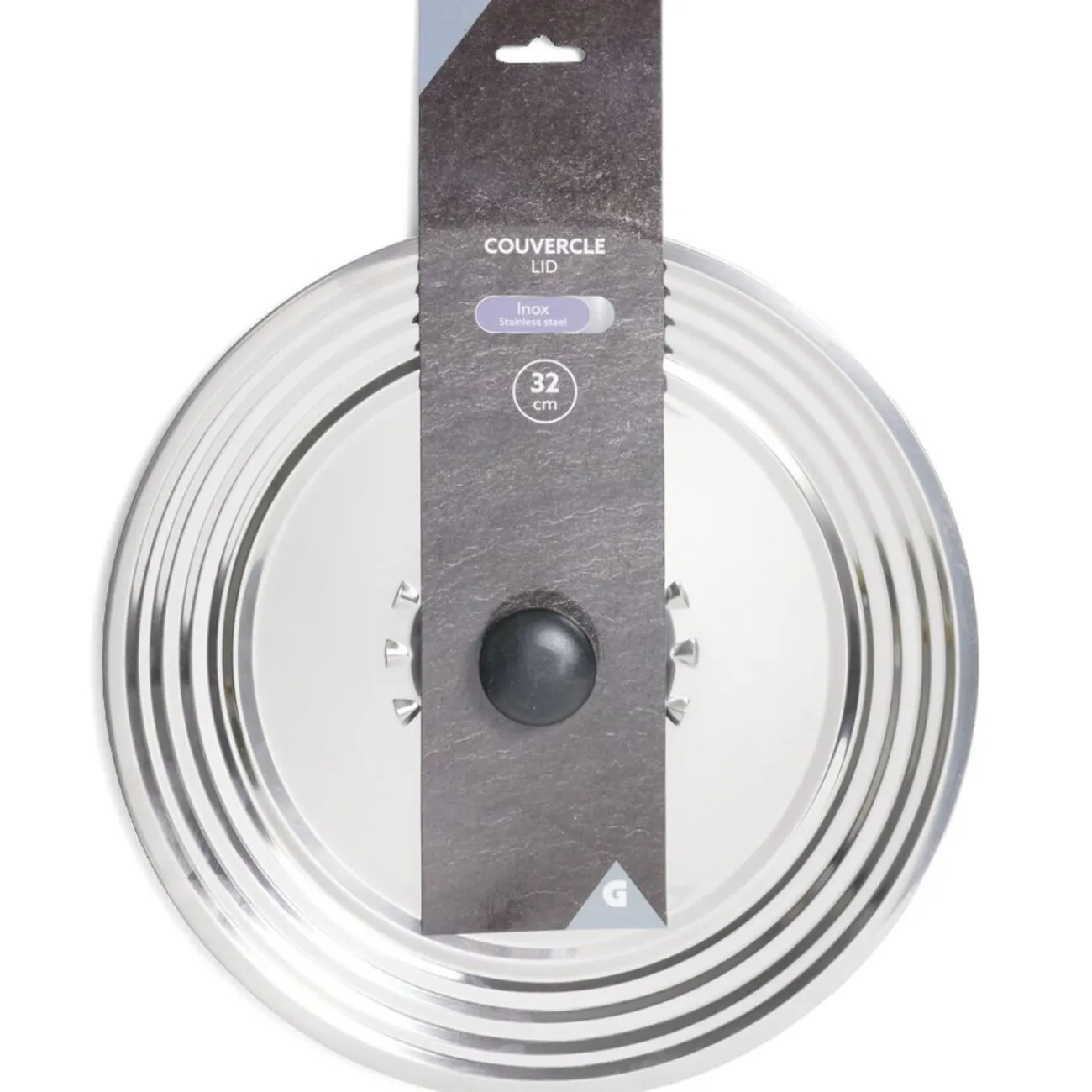 Terminé les éclaboussures lors de la cuisson de vos aliments grâce à ce couvercle en inox muni d’une poignée centrale.