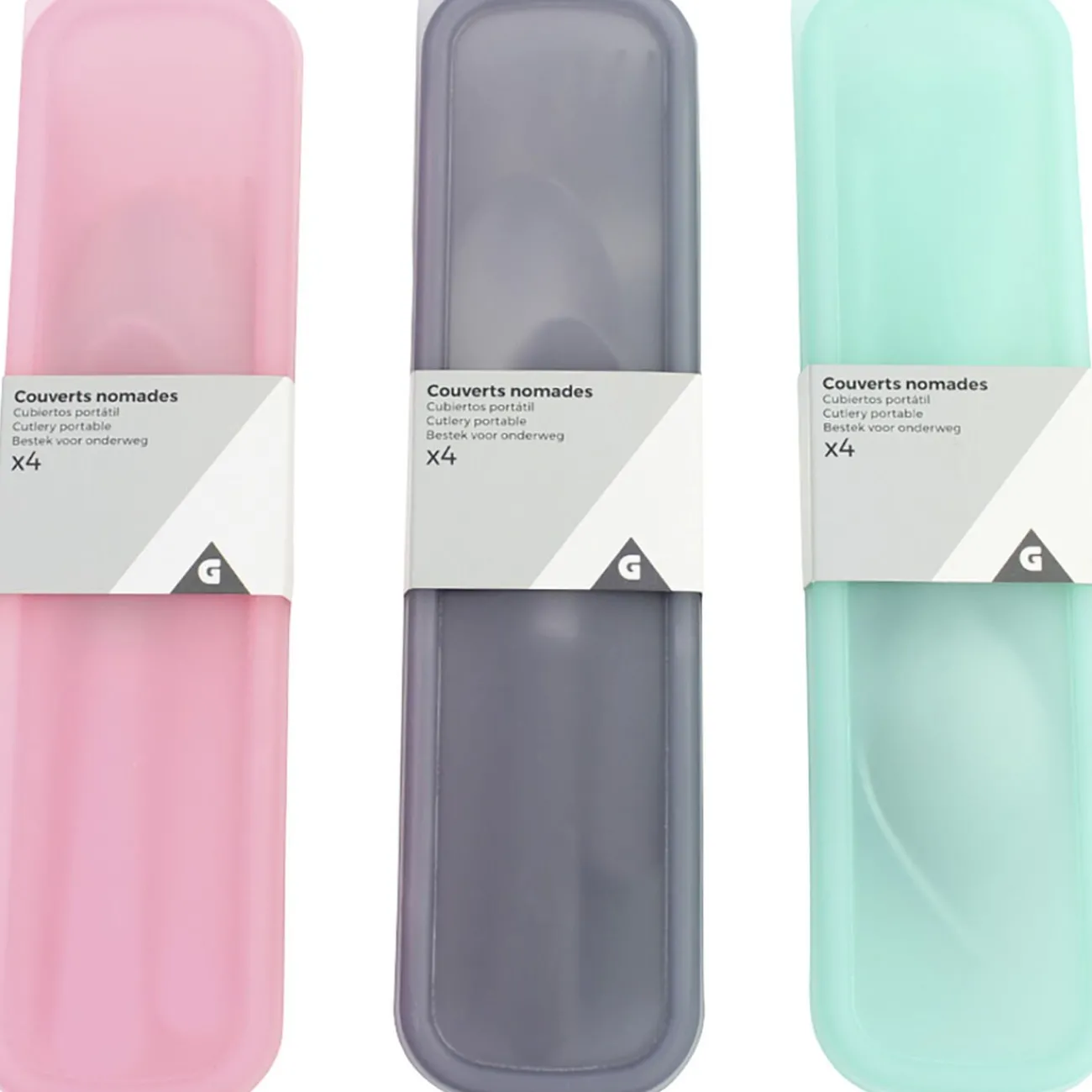 Sa boîte colorée vous permet de transporter de façon hygiénique votre fourchette, couteau, cuillère à soupe et cuillère à café. Après utilisation, les couverts sales peuvent être remis dans leur boîte pour vous permettre de les ramener et les laver à la maison, sans salir vos affaires sur le retour.