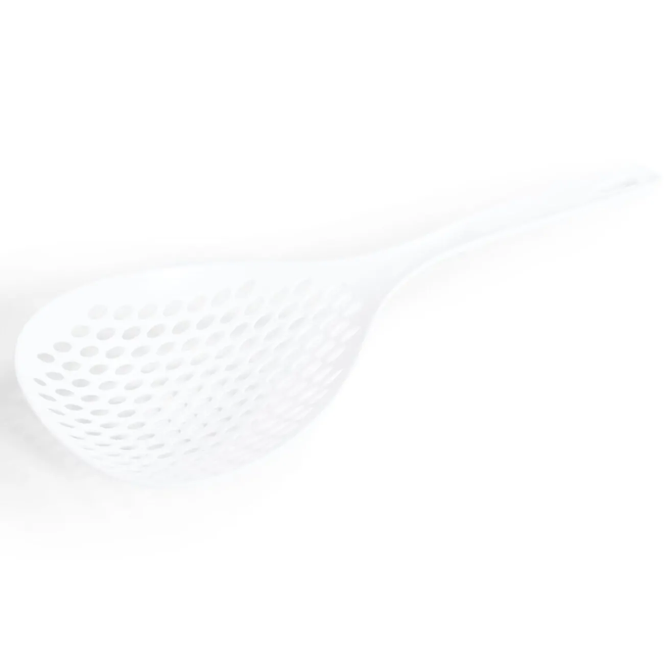 Cette cuillère écumoire en plastique est un outil de cuisine pratique et indispensable.