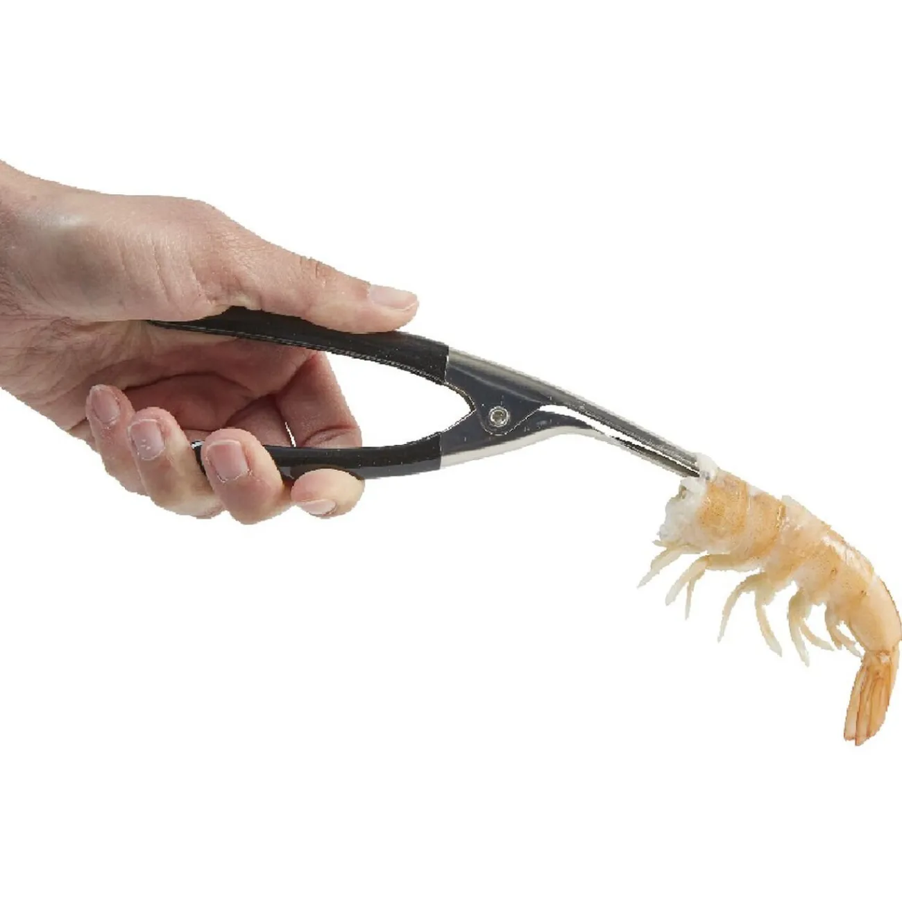 Décortiqueur à crevette en acier inoxydable avec poignée ergonomique. Permet d’extraire la chair des crevettes et gambas sans se salir les mains et sans abîmer les crustacés.