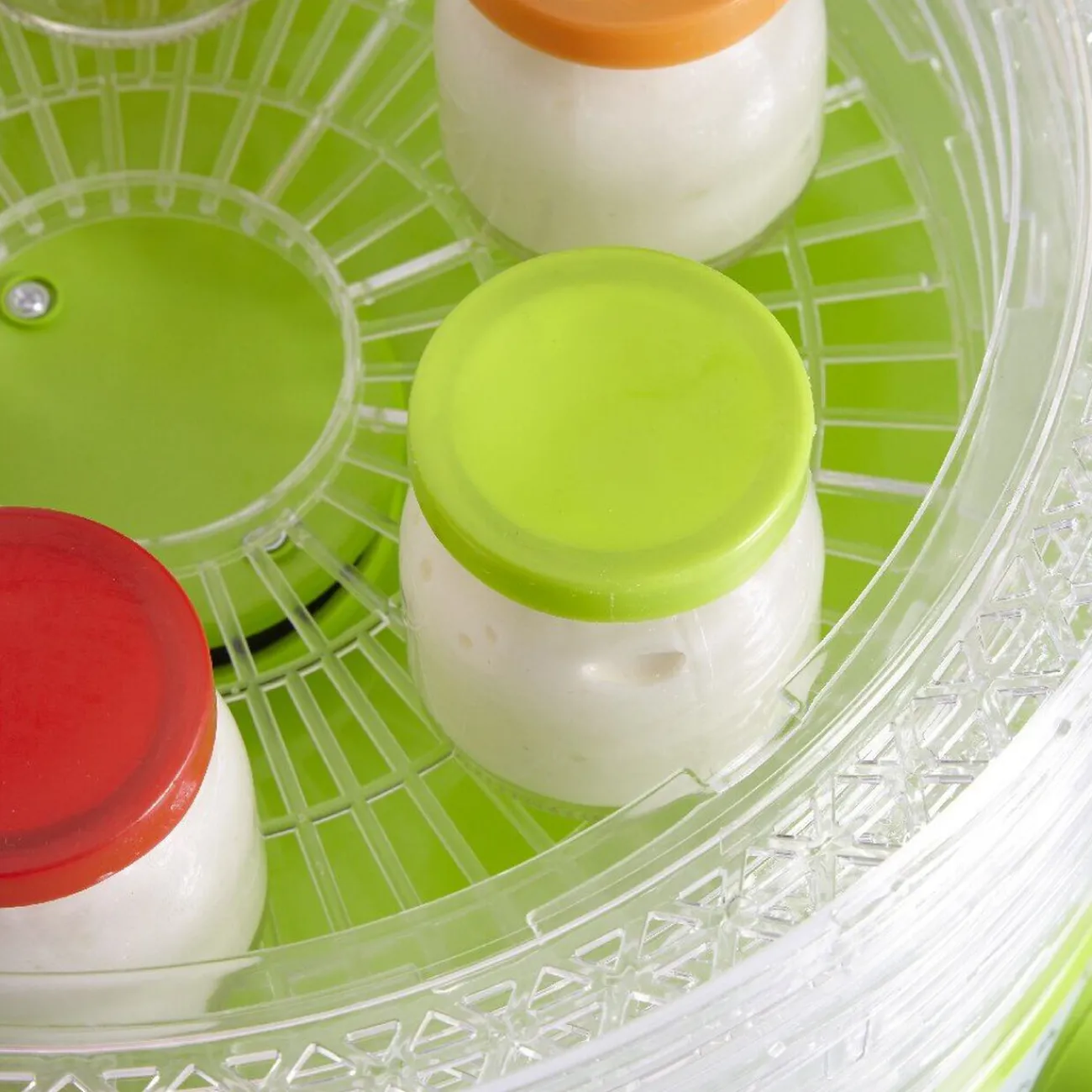 Déshydrateur alimentaire avec yaourtière + 6 pots en verre avec couvercle en plastique.