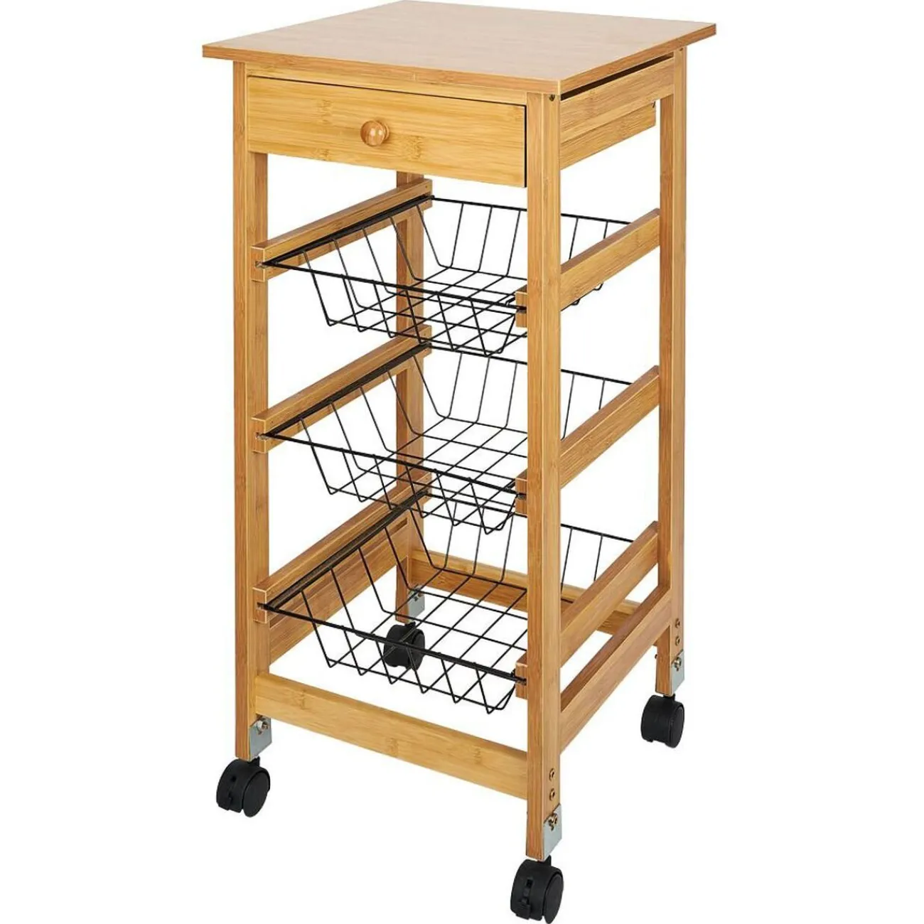 Composée d’un tiroir en bambou fermé et de 3 tiroirs en métal ouvert, elle peut supporter une charge jusqu’à 2 kg par niveau.
