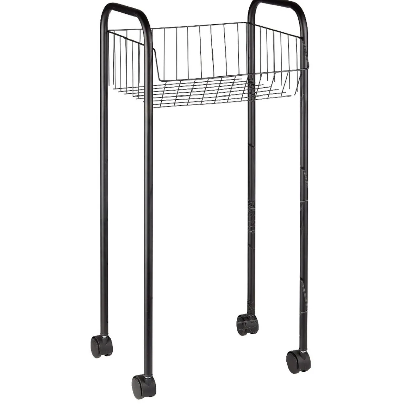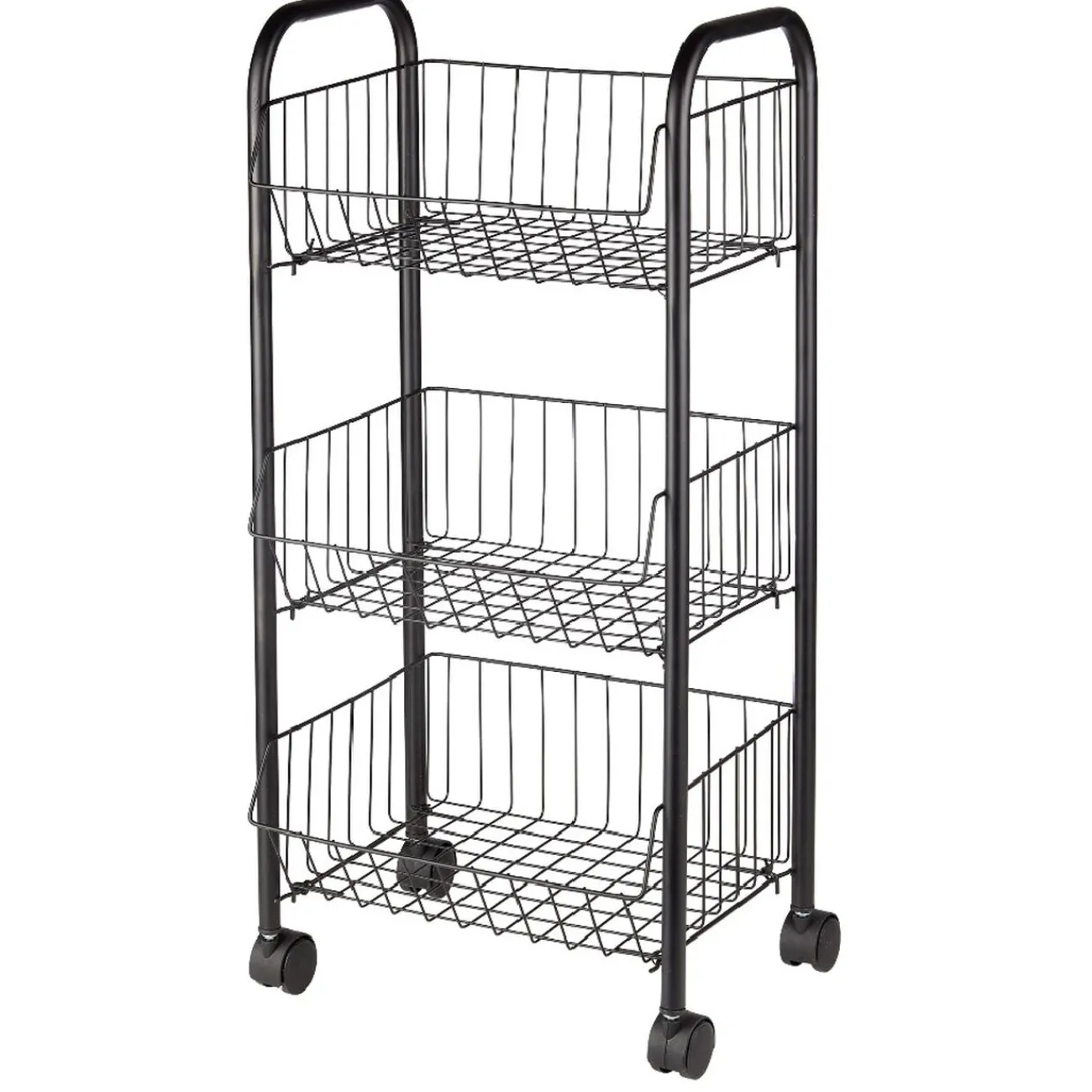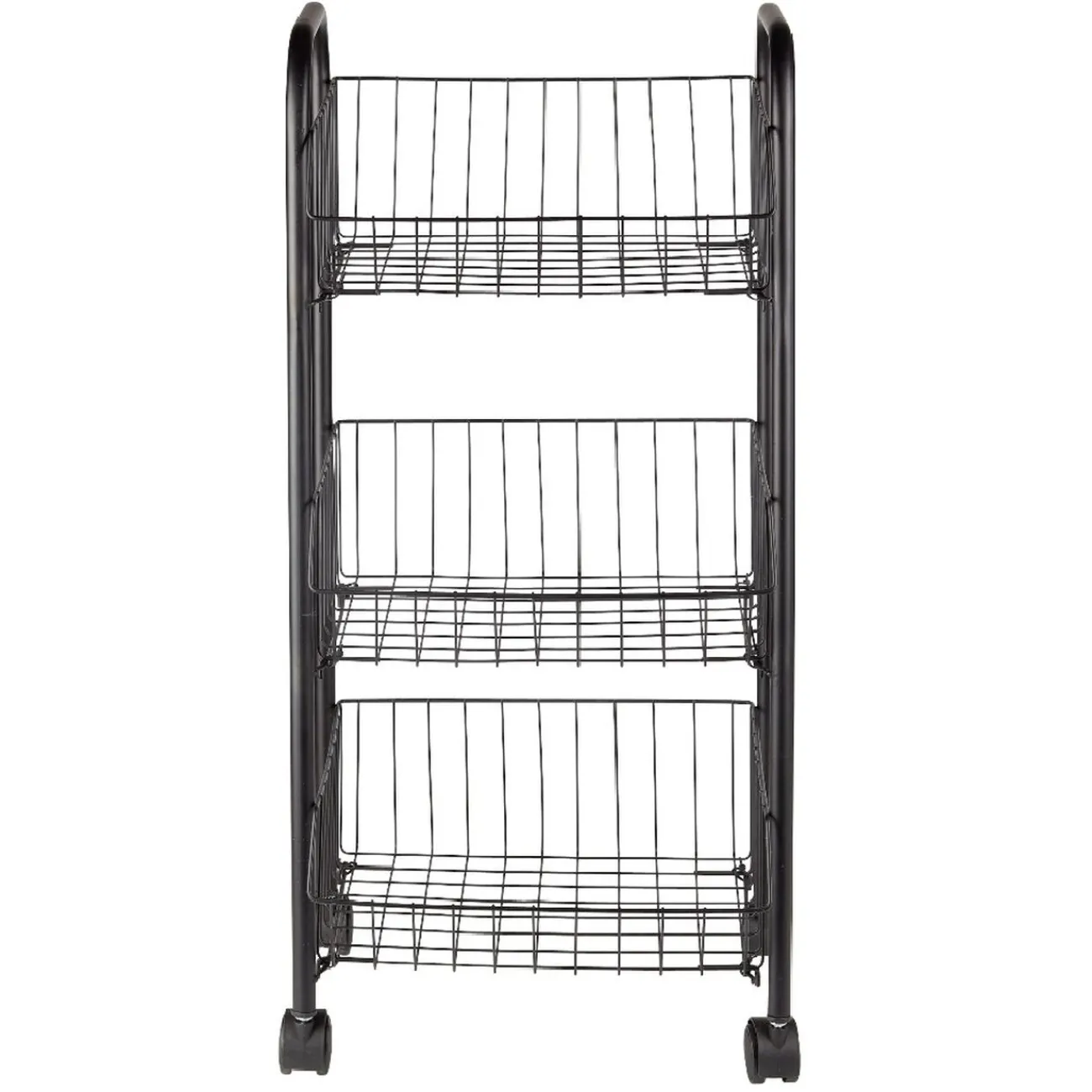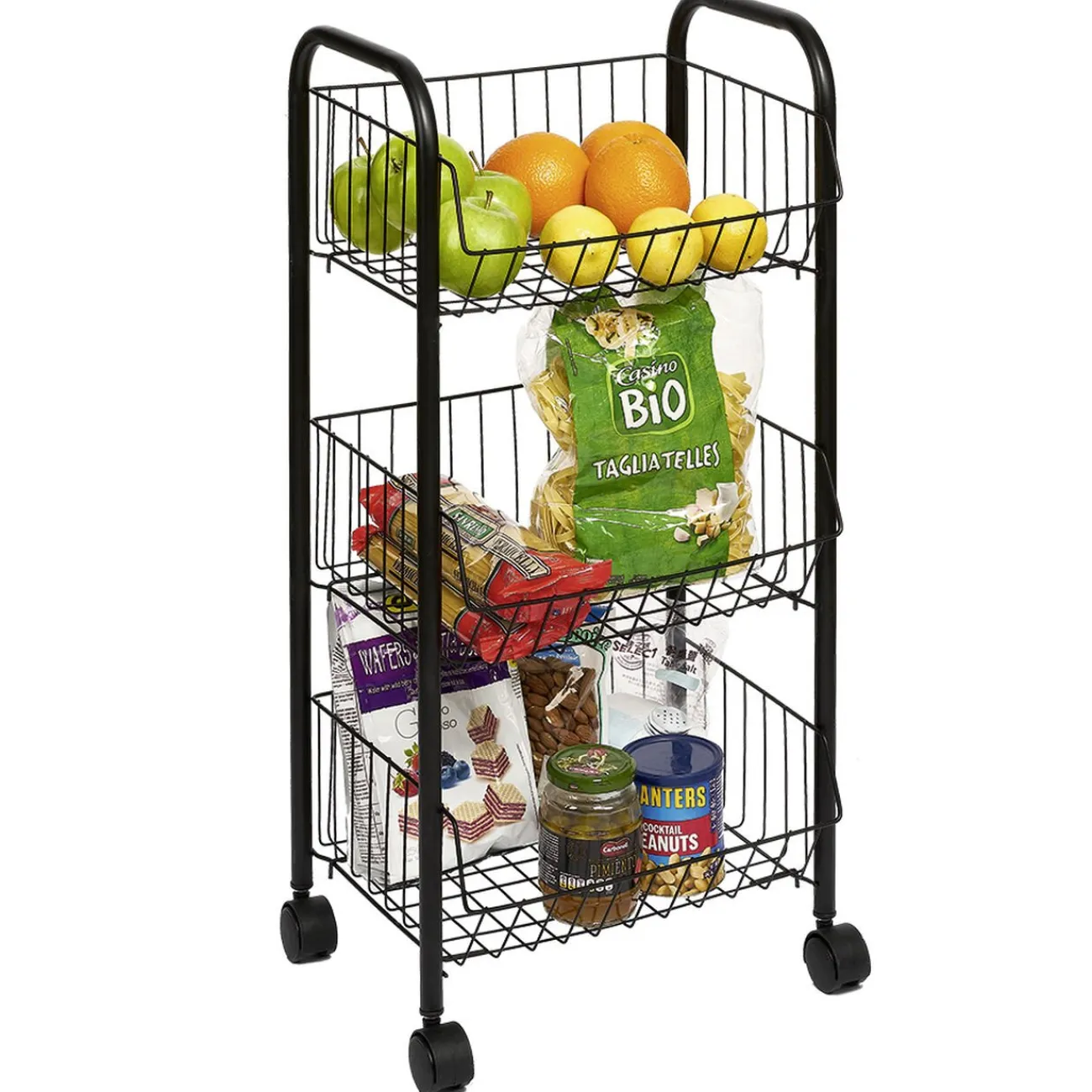 Apportez un rangement supplémentaire à votre cuisine avec cette desserte à roulettes en métal noir.
