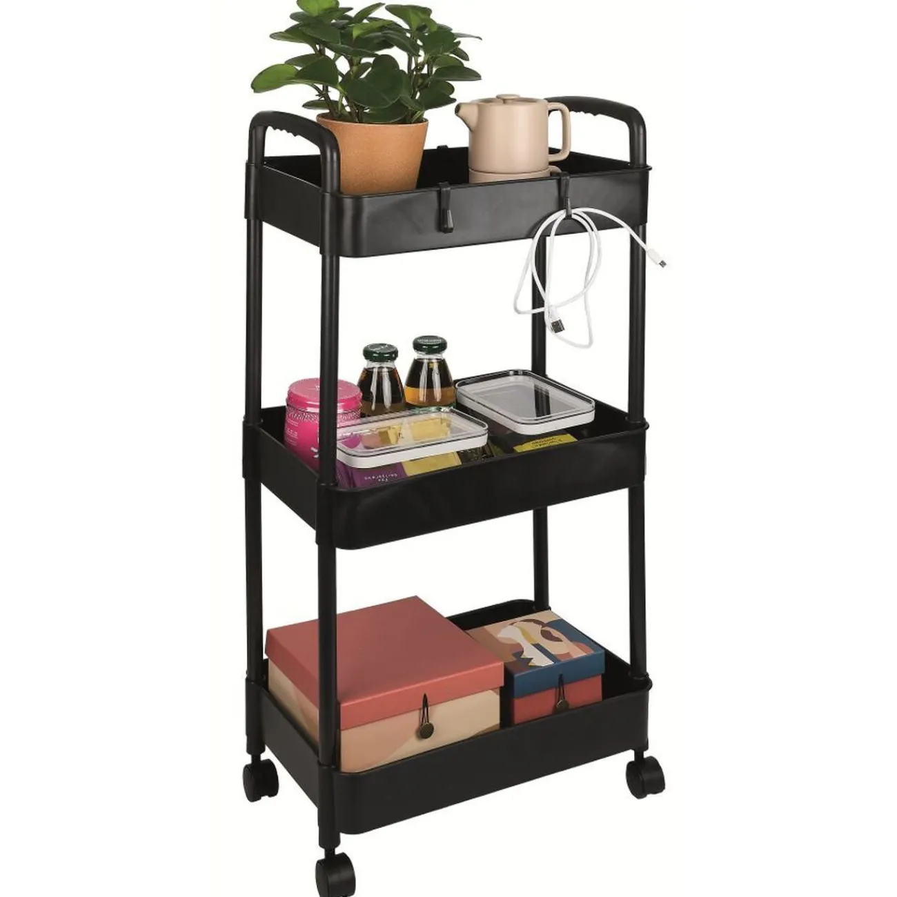 Cette desserte à roulettes dotée de 3 niveaux est idéale pour ajouter fonctionnalité et mobilité à votre espace.