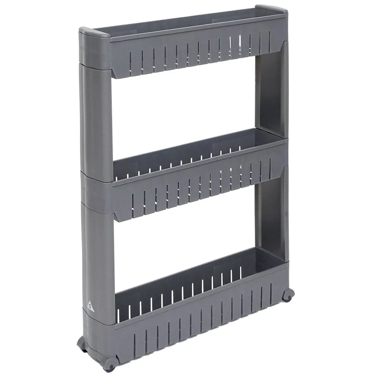 Aménagez vos espaces étroits perdus avec cette desserte de cuisine en plastique gris, idéale pour optimiser votre rangement.