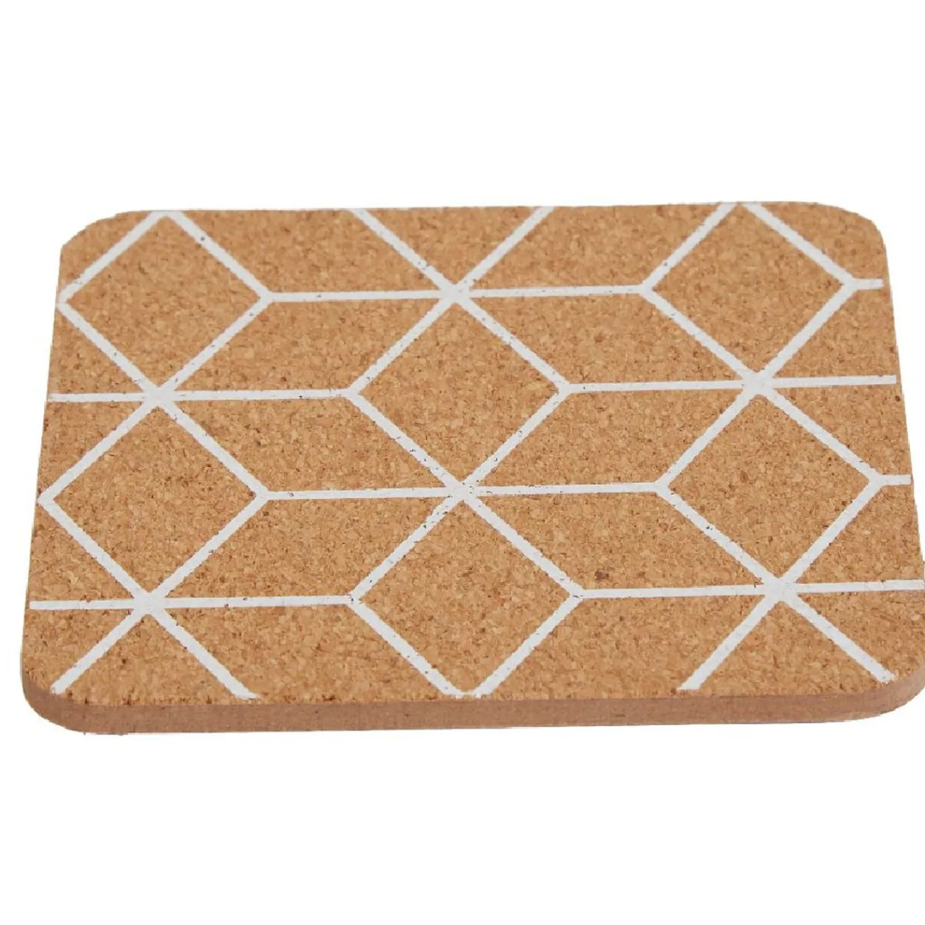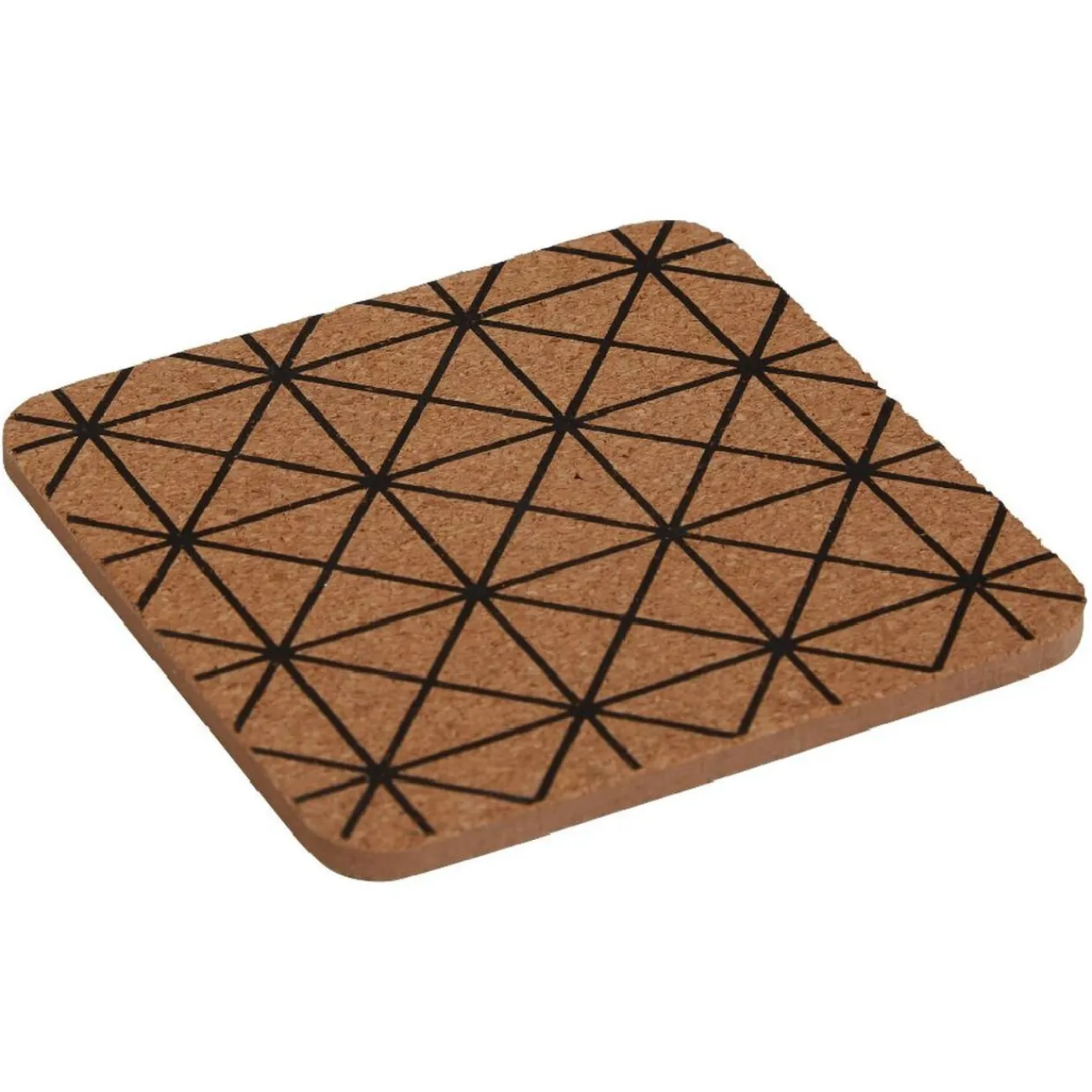 Lot de 4 dessous de verre en liège à motifs géométriques noirs, en plus de protéger votre table ils contribuent à apporter un vent de modernité à votre intérieur.