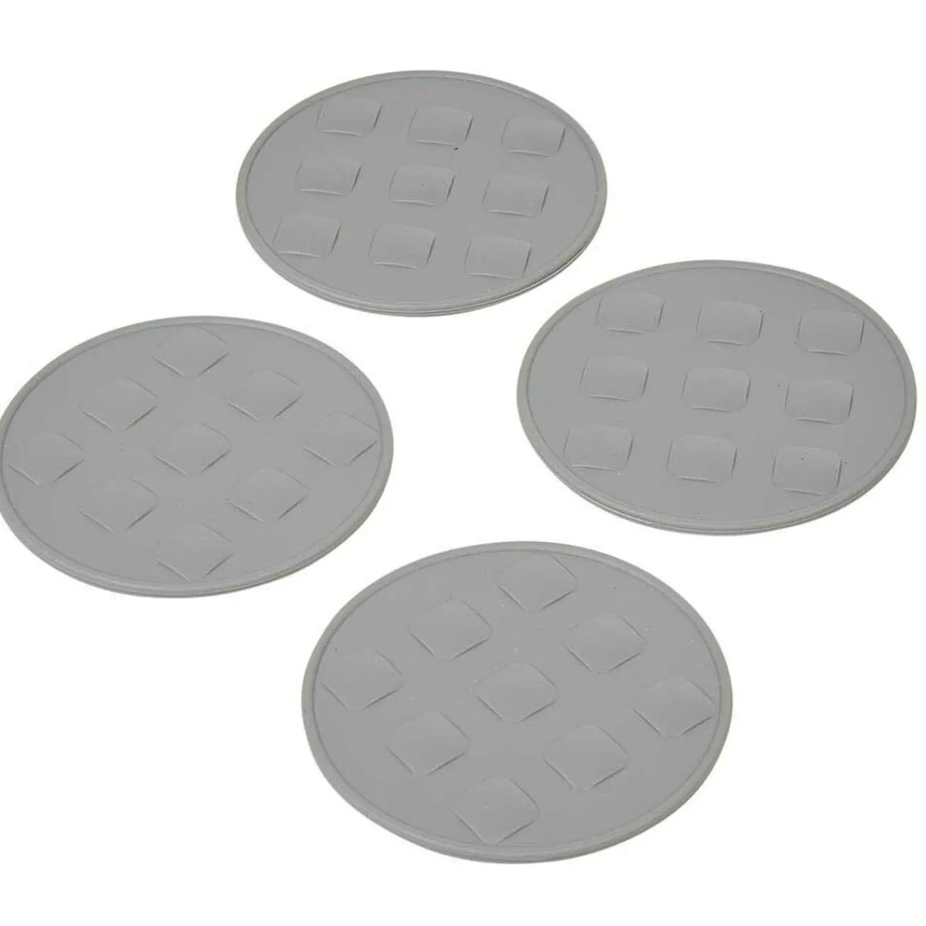 Lot de 4 dessous de verre en silicone gris, de 8,5 cm de diamètre.