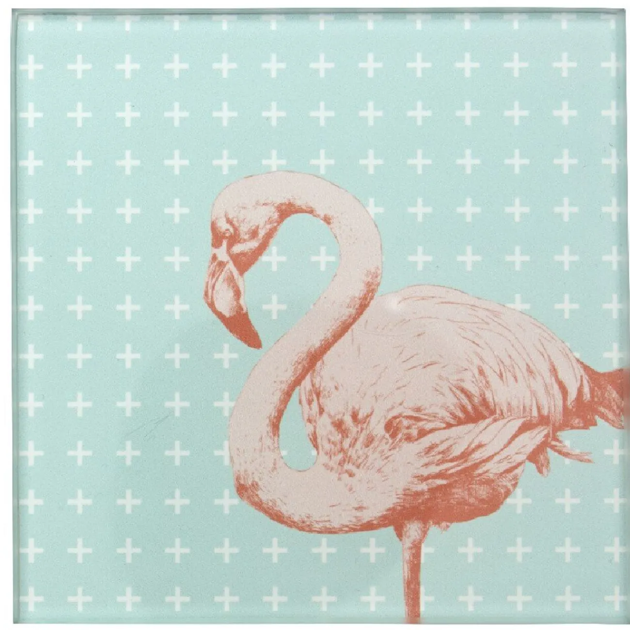 Dans la collection « Sweet exotic »: Lot de 4 dessous de verre en verre disponibles en 2 designs ananas ou flamant rose. Dimension 9 x 9 cm.