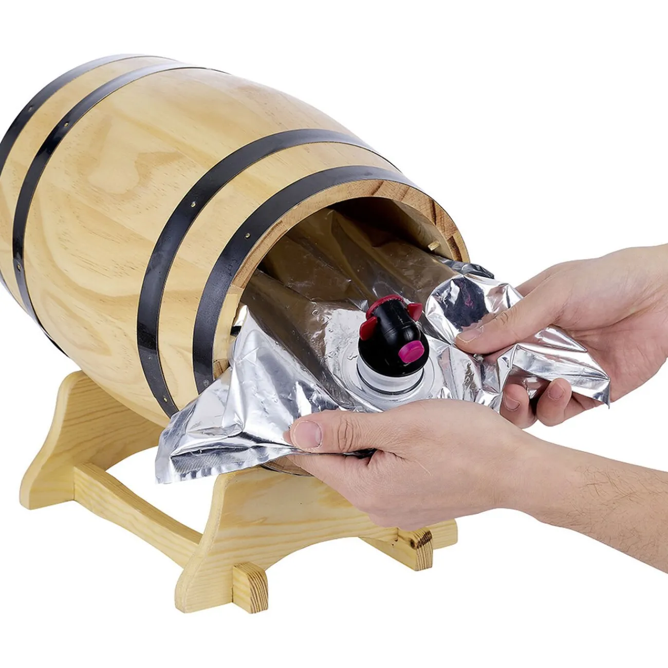 Servez votre vin avec originalité grâce à ce distributeur en forme de tonneau sur socle.
