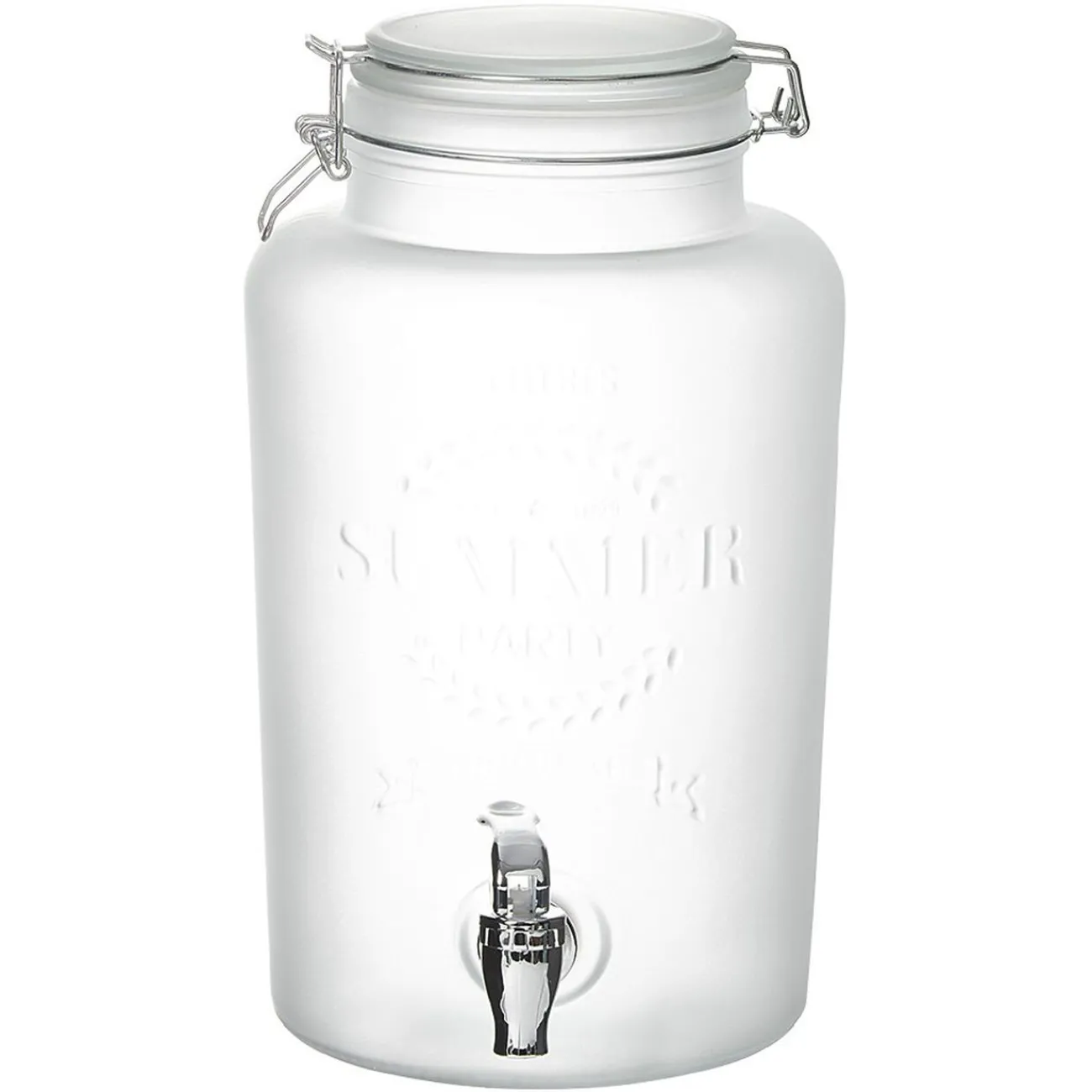 Voyez les choses en grands pour vos soirées et après-midis d’été avec ce distributeur de boissons. Fait de verre à l’effet givre, il comprend un bec verseur ainsi que l’inscription « SUMMER PARTY ».