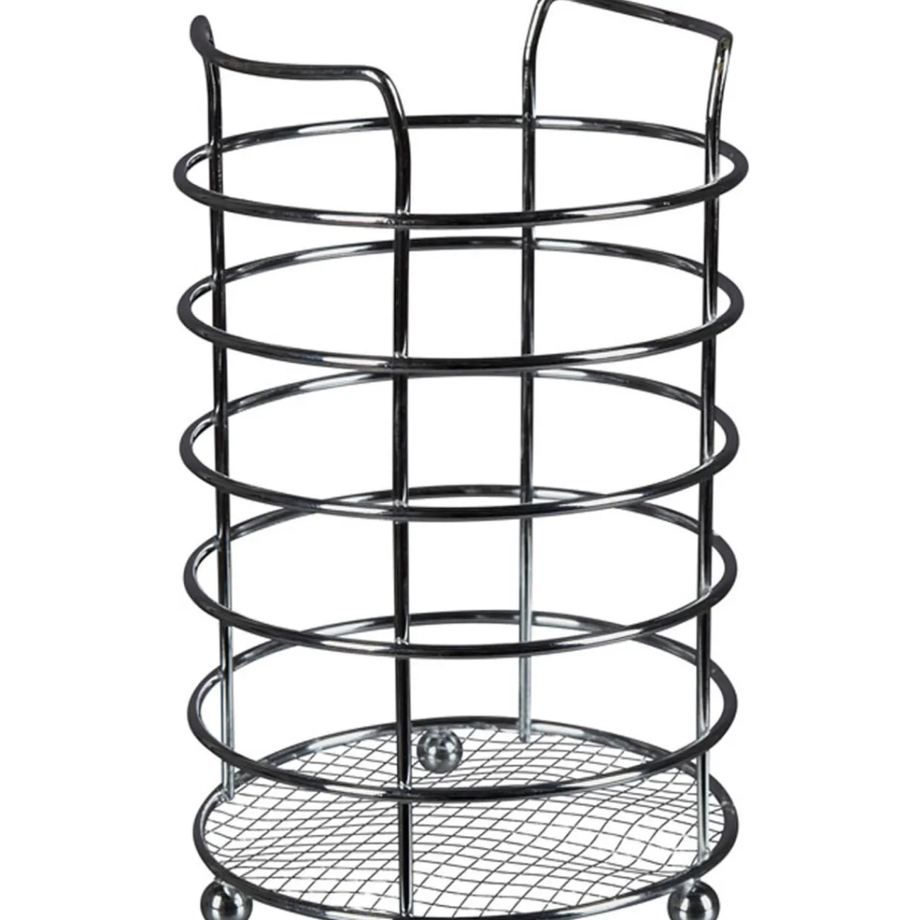 Egouttoir à couverts rond en métal chromé.