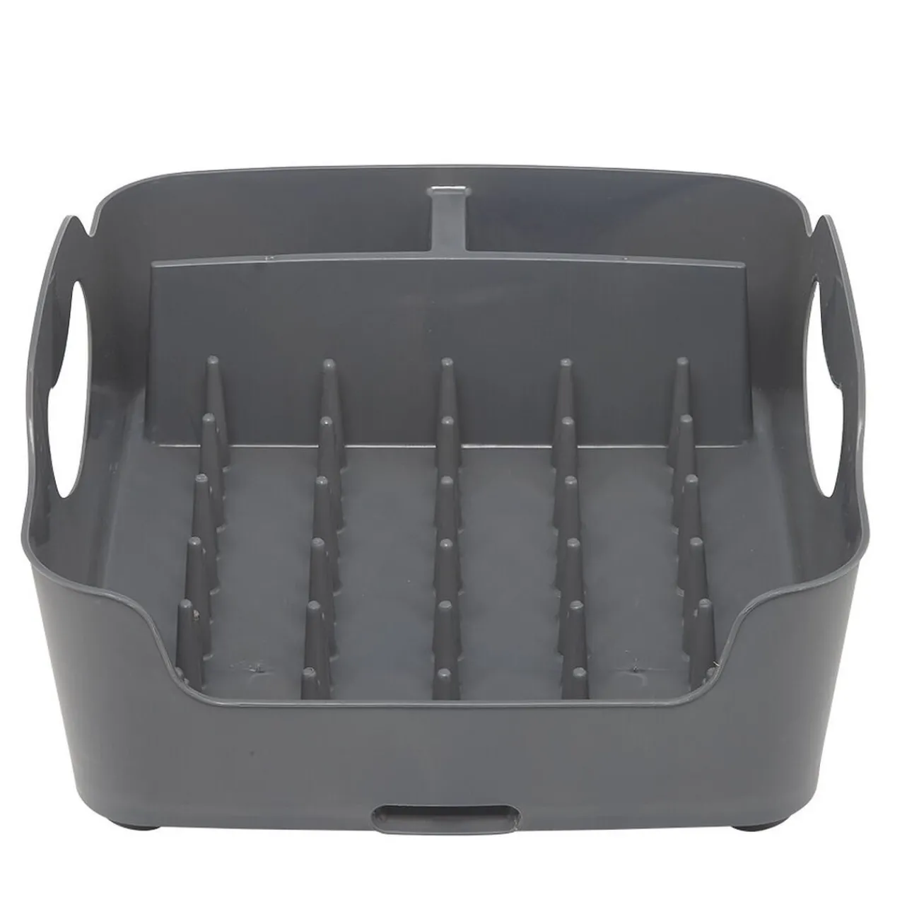 Égouttoir à vaisselles gris foncé avec 2 emplacements pour les couverts.