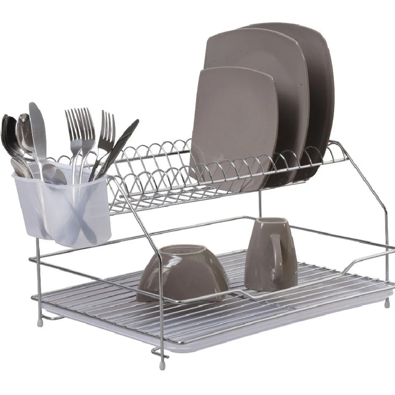 Egouttoir à vaisselle XXL 2 niveaux, dim. 47,5×26,5×36,5 cm, métal et plastique.