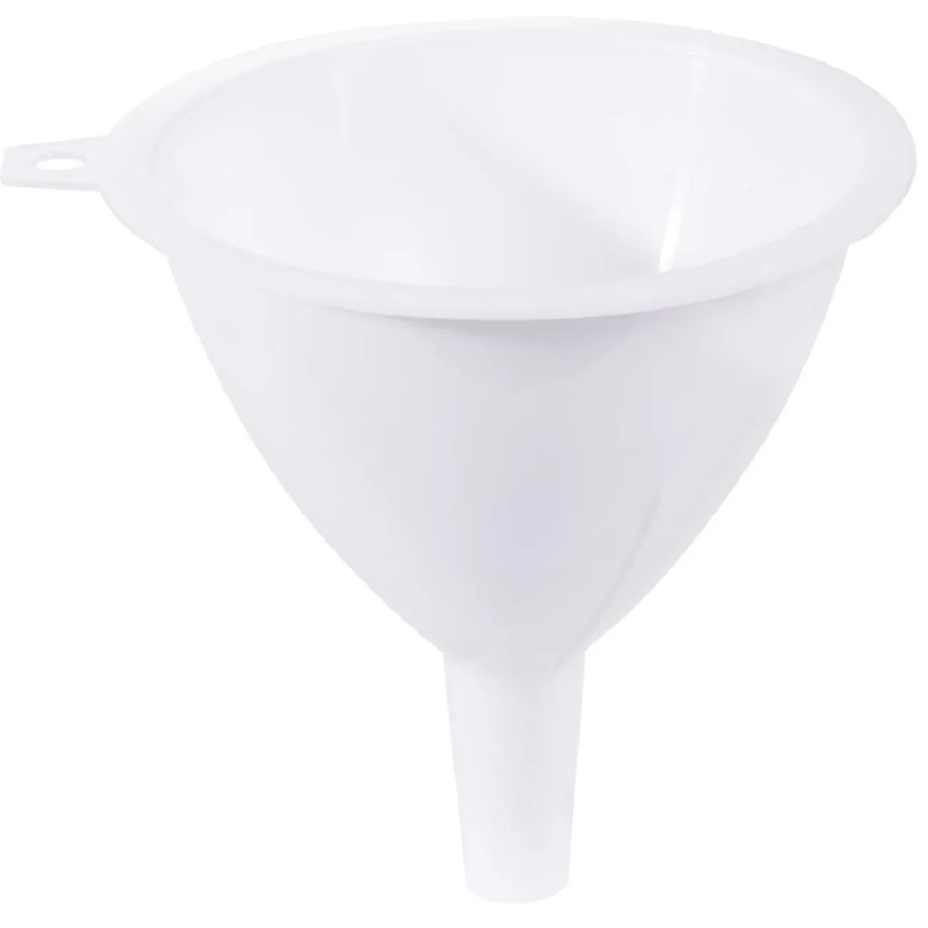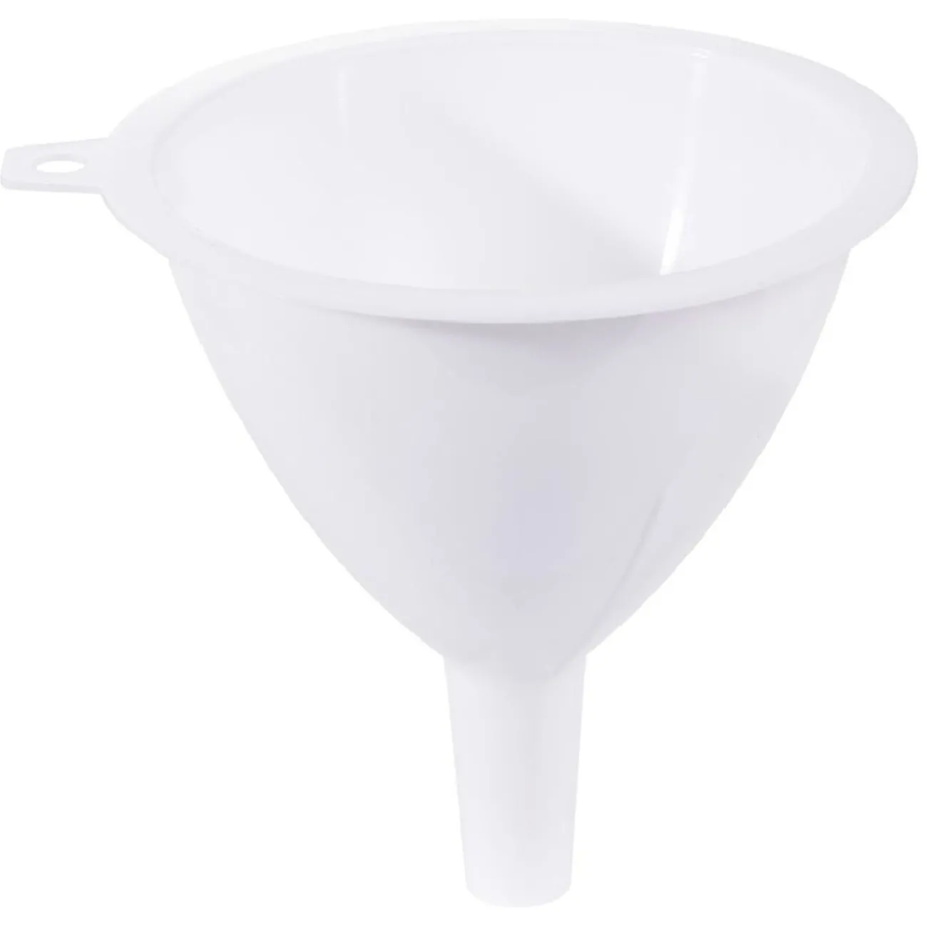 Lot de 3 entonnoirs blancs, chacun d’un diamètre différent.