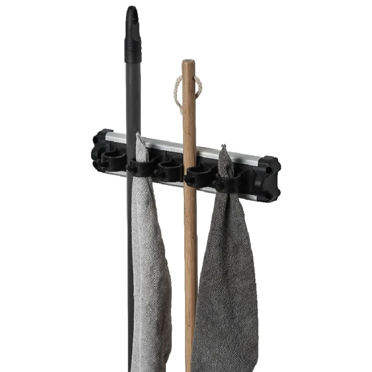Gagnez de la place avec cet accroche balai qui se fixe au mur. Jusqu’à 5 crochets pour optimiser l’espace et ranger balai, pelle, plumeau…