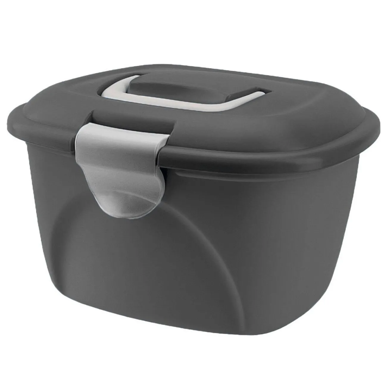Boîte de rangement grise avec un plateau de 4 compartiments.Idéal pour optimiser votre rangement !
